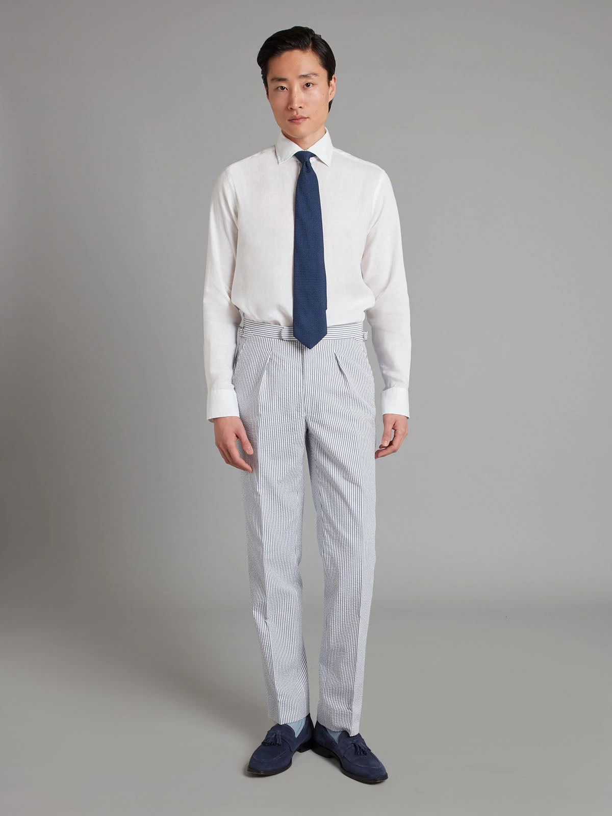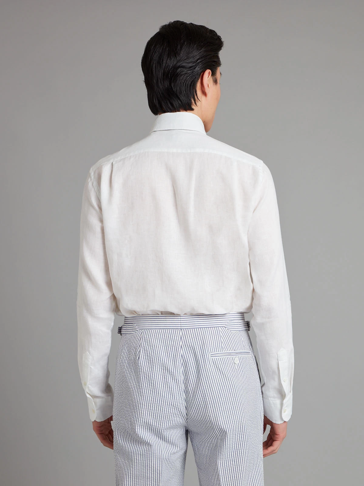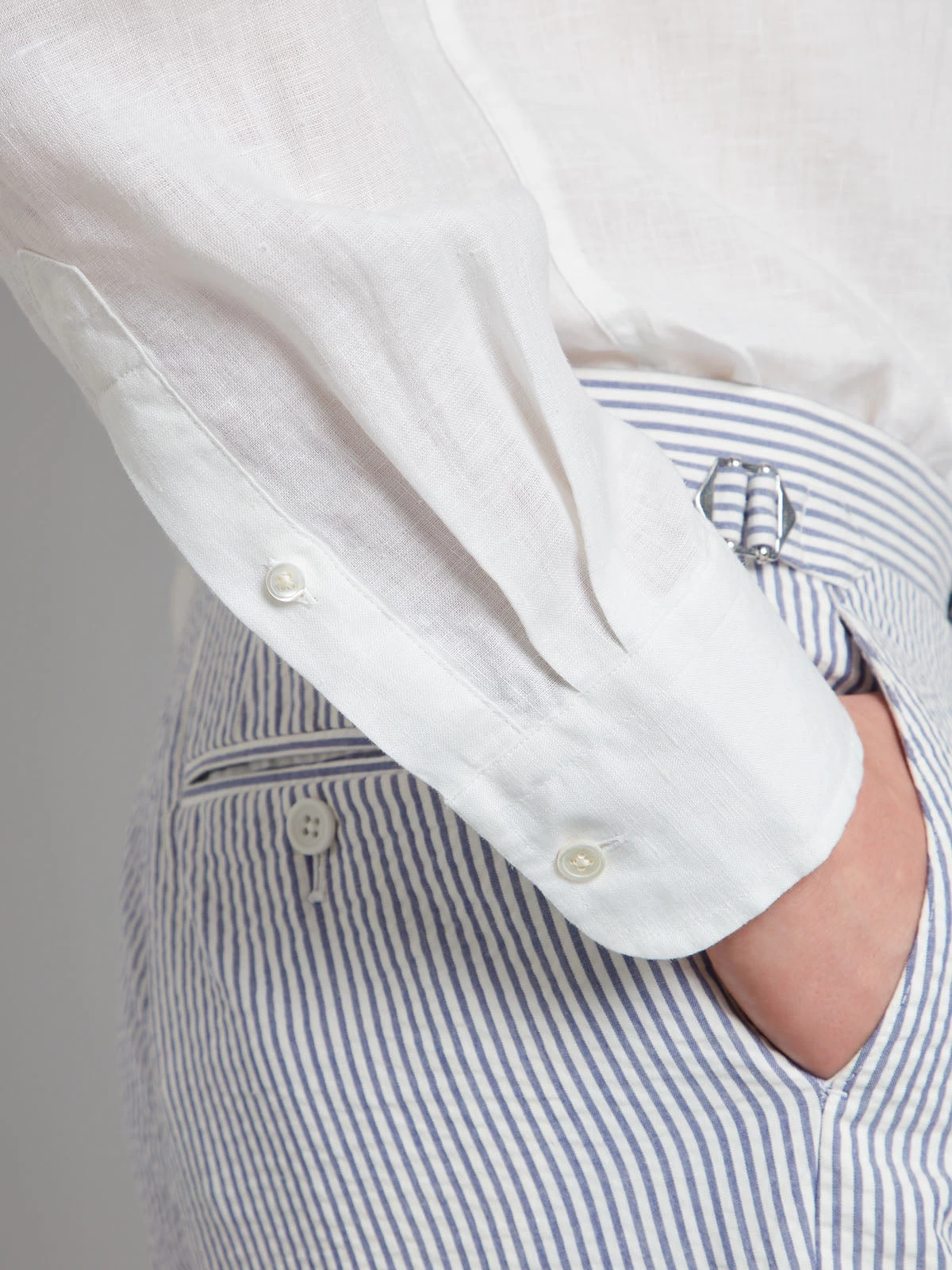 Embrace the timeless elegance of classic Mediterranean summer style with our new Amalfi linen shirt. This lightweight and breathable shirt is designed to keep you cool and comfortable in warm weather, making it an essential addition to your seasonal wardrobe. Crafted with meticulous attention to detail with a classic collar and single cuffs, designed to transition seamlessly from a day by the beach to an evening of al fresco dining.