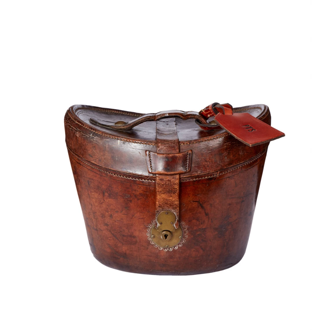 Starting at £1250. Oliver Brown Antique Top Hat boxes are all leather crafted. Available in a variety of styles. When you purchase a Top Hat Box, you will be contacted to select the style of your choice.