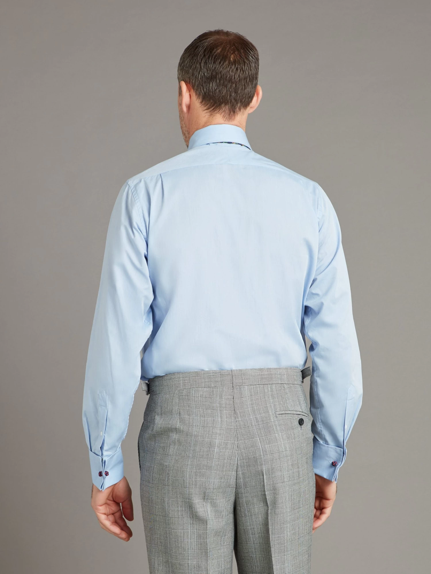 This smart shirt, made in durable mid-blue poplin, will provide a foundation of elegance to any outfit; featuring a double cuff and a classic collar with internal, removable collar stiffeners. Oliver Brown shirts have a classic Jermyn Street cut; relaxed in the chest and sleeve for a comfortable fit.