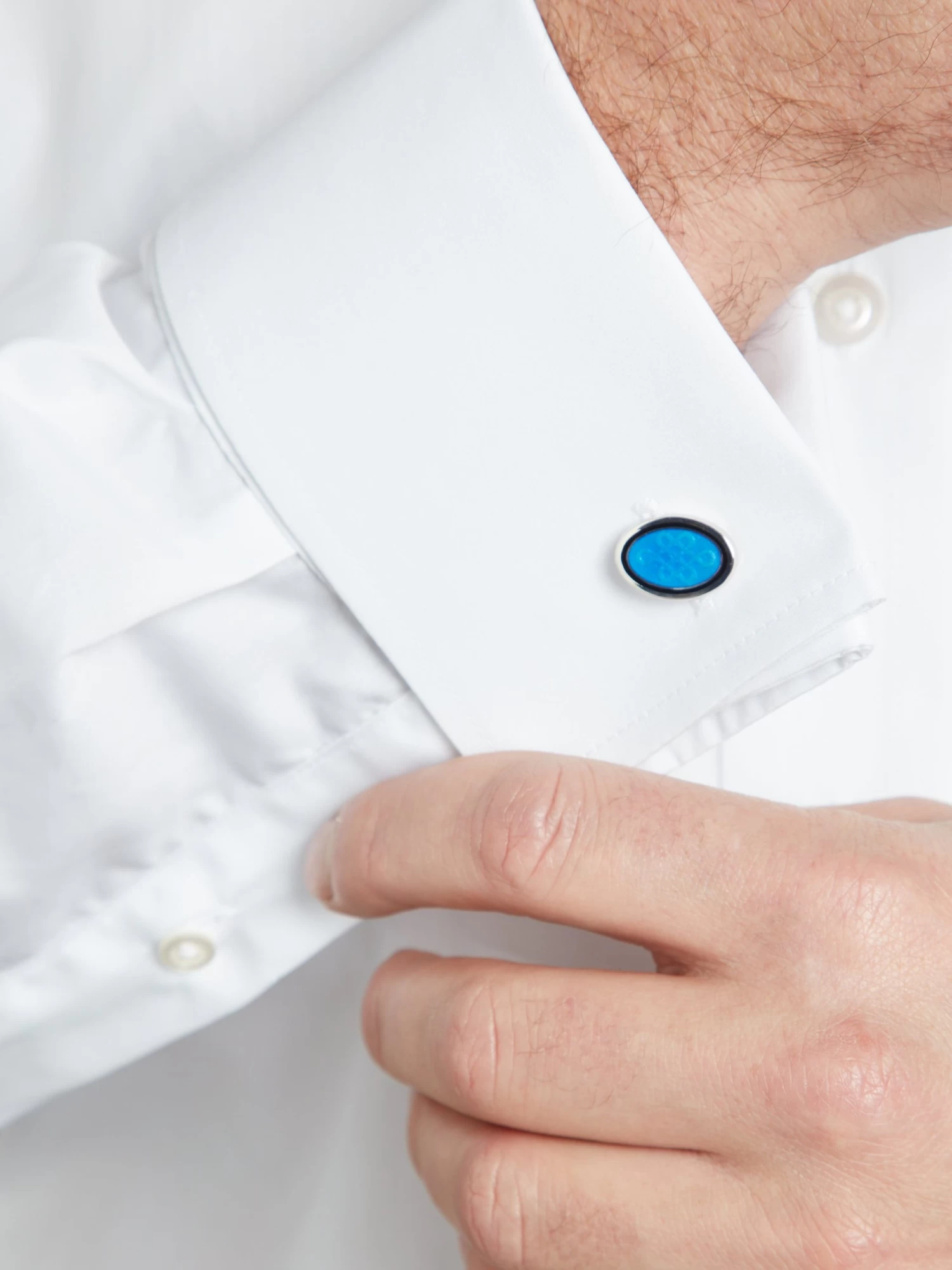 This smart shirt, made in durable white poplin, will provide a foundation of elegance to any outfit; featuring a double cuff and a classic collar with internal, removable collar stiffeners. Oliver Brown shirts have a classic Jermyn Street cut; relaxed in the chest and sleeve for a comfortable fit.