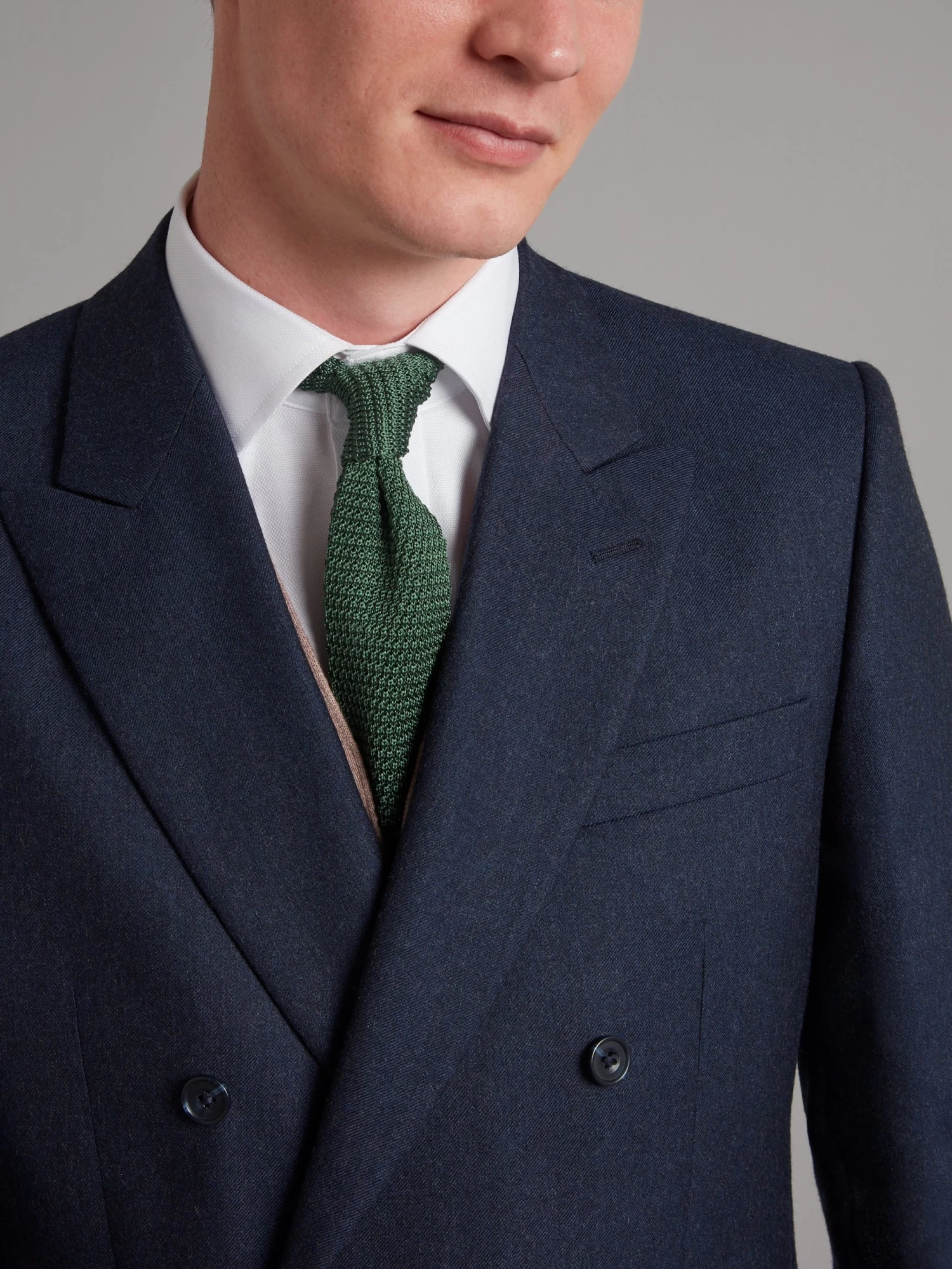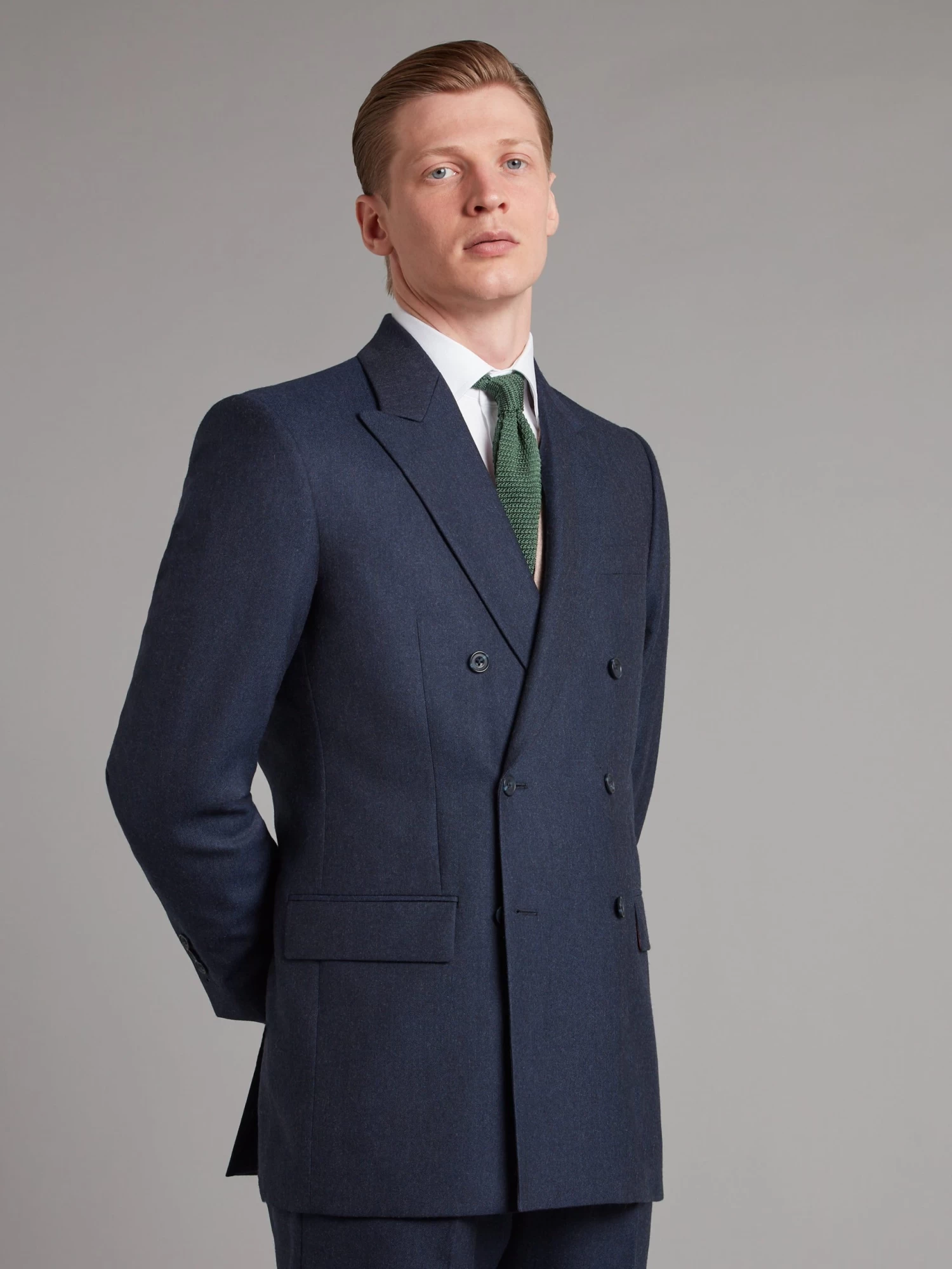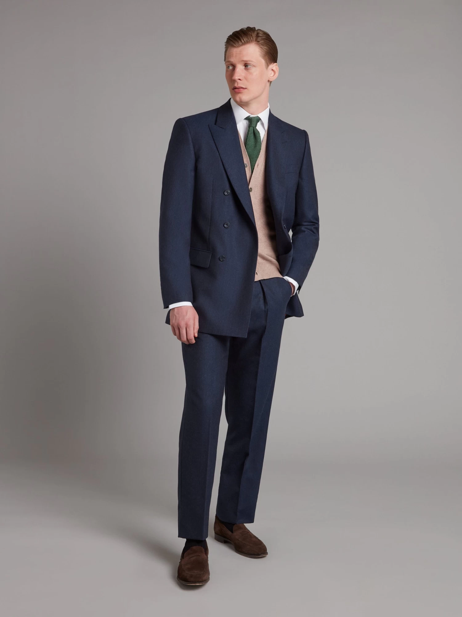 Tailored from our double-breasted Cadogan block, this suit has a classic-fitted cut. The cloth is sourced from British mills, and together with a canvassed chest-piece and four button working cuffs this is an enduring piece.