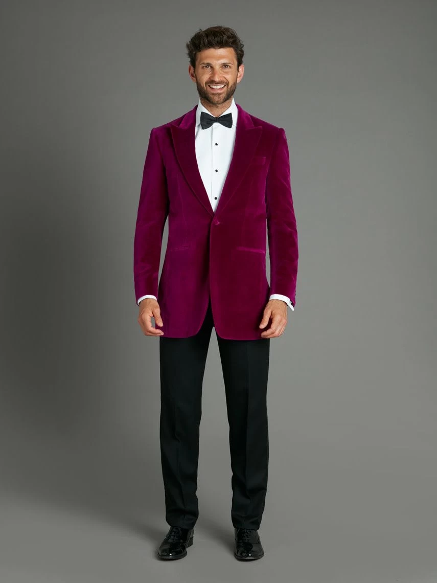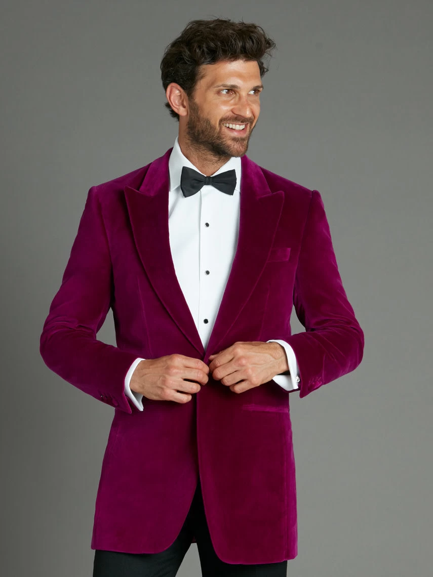 Celebrating our signature Chelsea style, the limited-edition Carlyle smoking jacket in brilliant raspberry strikes the eye with its luxurious velvet fabric and sharp tailoring. Our ‘Carlyle’ block fit is designed for the vibrant life of the modern gentleman, with strong shoulders and a straight cut.