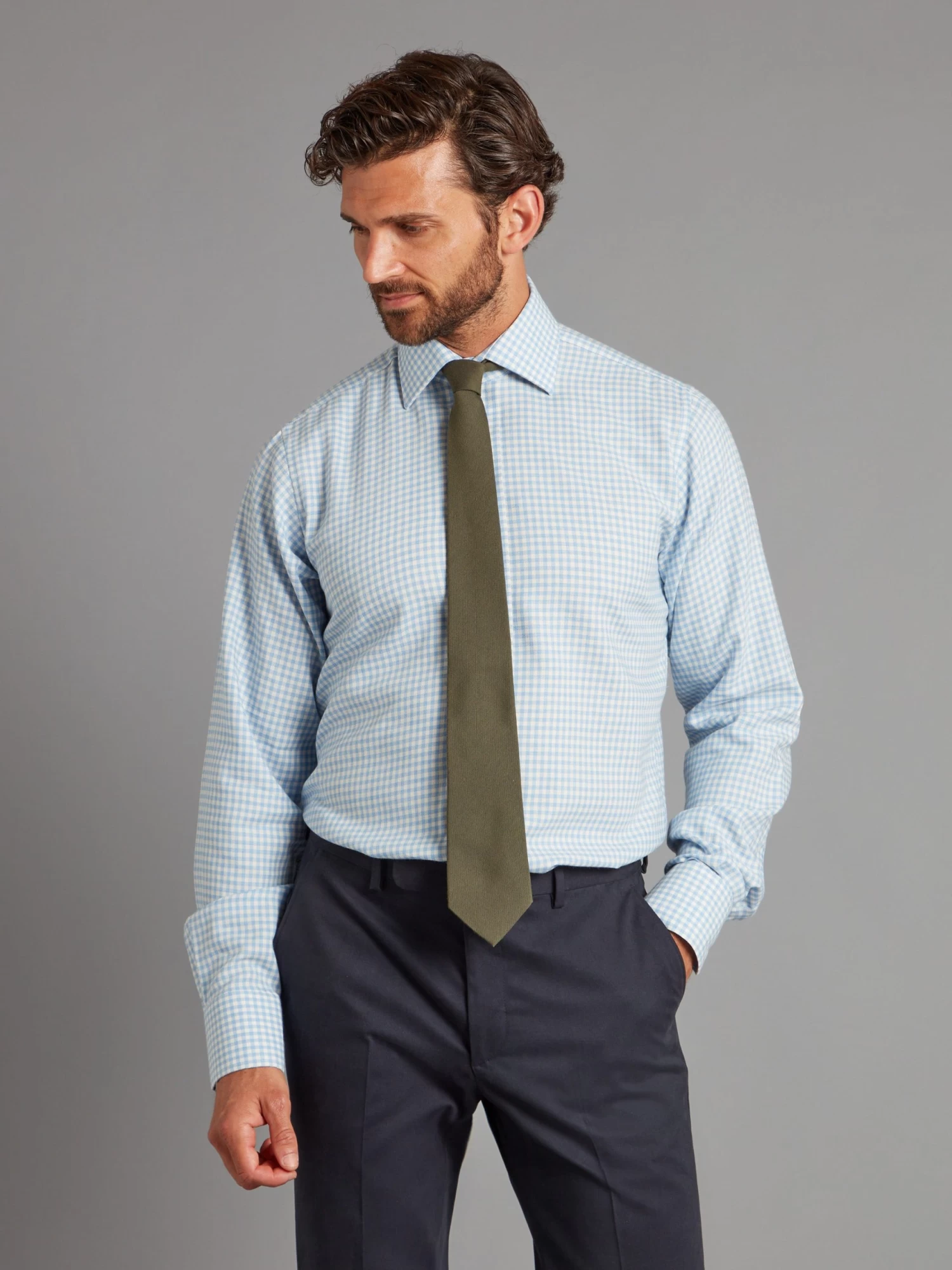 This Sky Blue Gingham Check Shirt are crafted from a cashmere and cotton blend, providing breathability with a soft touch. The shirts are available in 2 colour-ways and feature two-button cuffs.