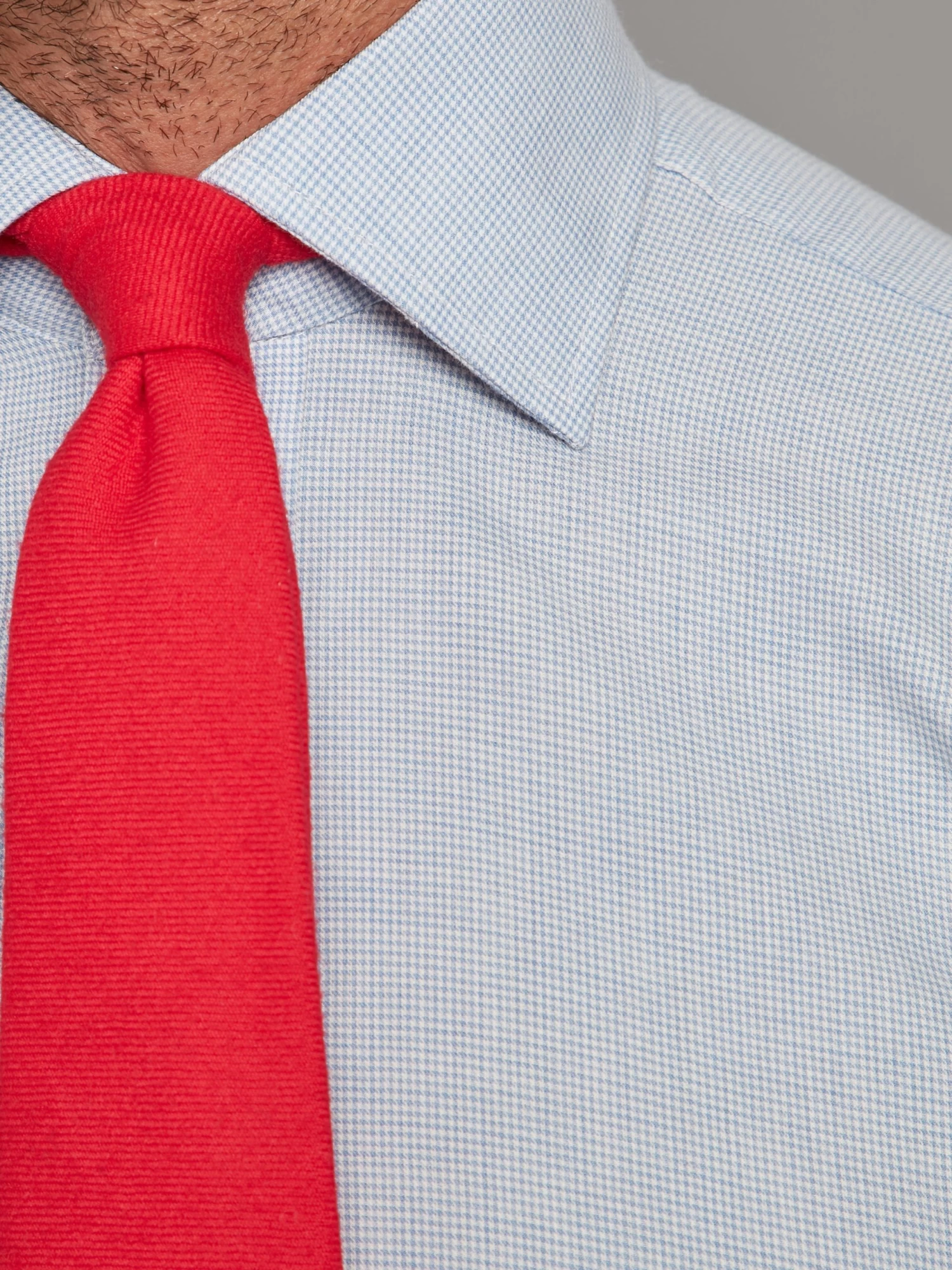These blue puppytooth shirts are crafted from a cashmere and cotton blend; they feature a classic Jermyn street cut, a cutaway collar and two-button cuffs.