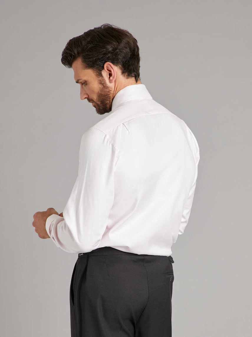 This smart poplin city shirt will provide a foundation of elegance to any outfit and leave a lasting good impression. Hand made in England and featuring a classic Jermyn Street cut giving a comfortable fit that’s generous across the shoulders.