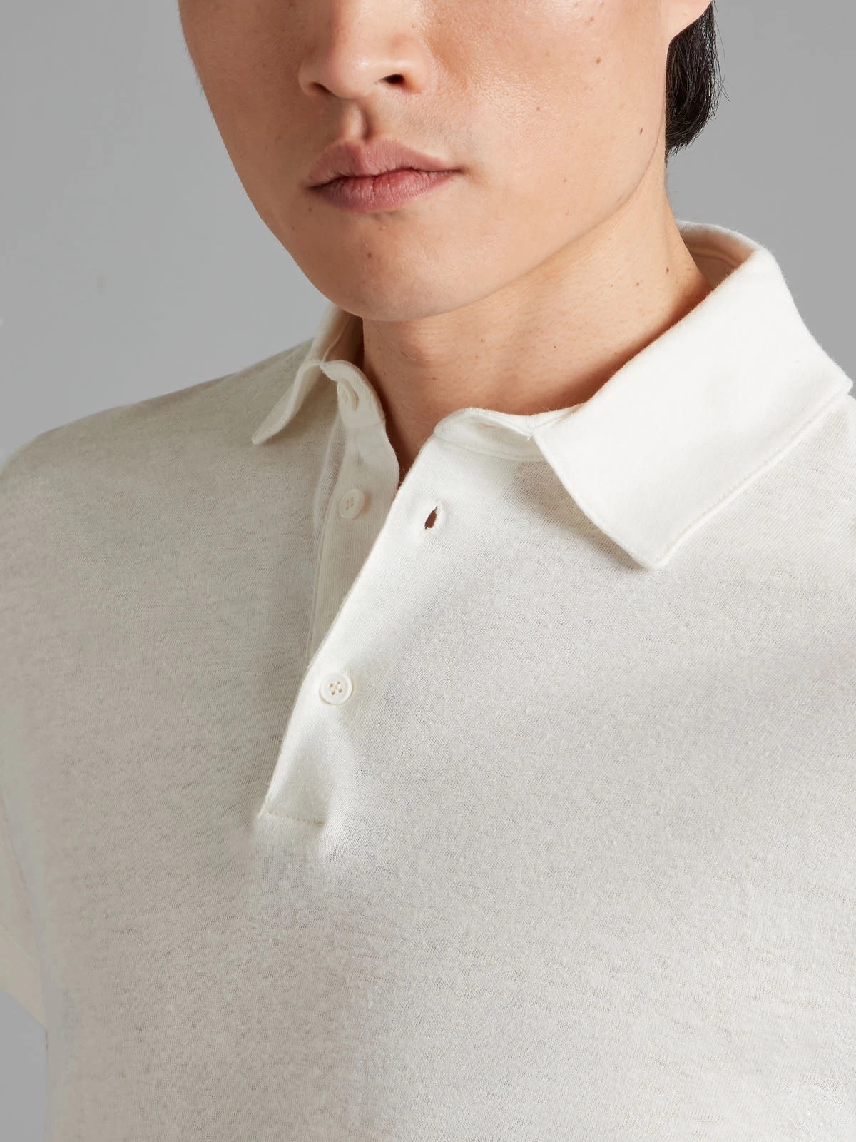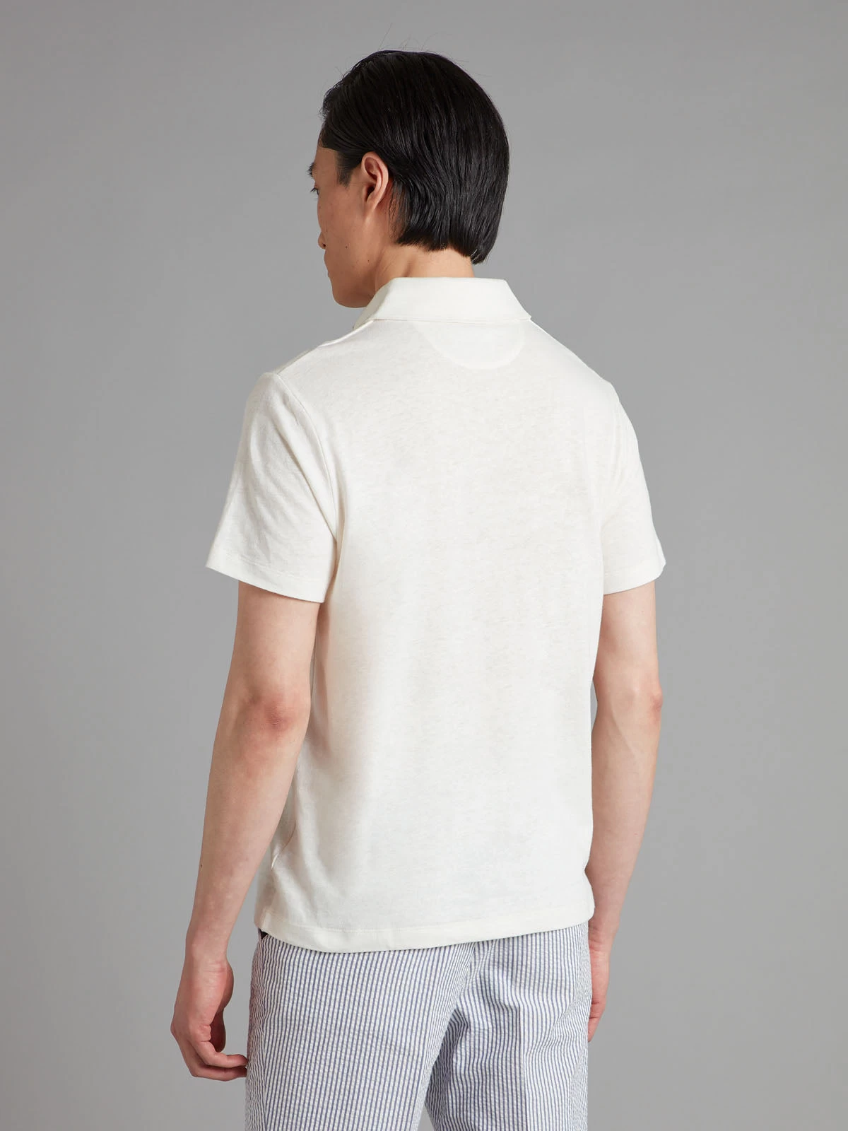 Oliver Brown’s cotton linen blend polo shirt in white is a summer classic; durable and soft, this shirt features a slim, flattering cut.