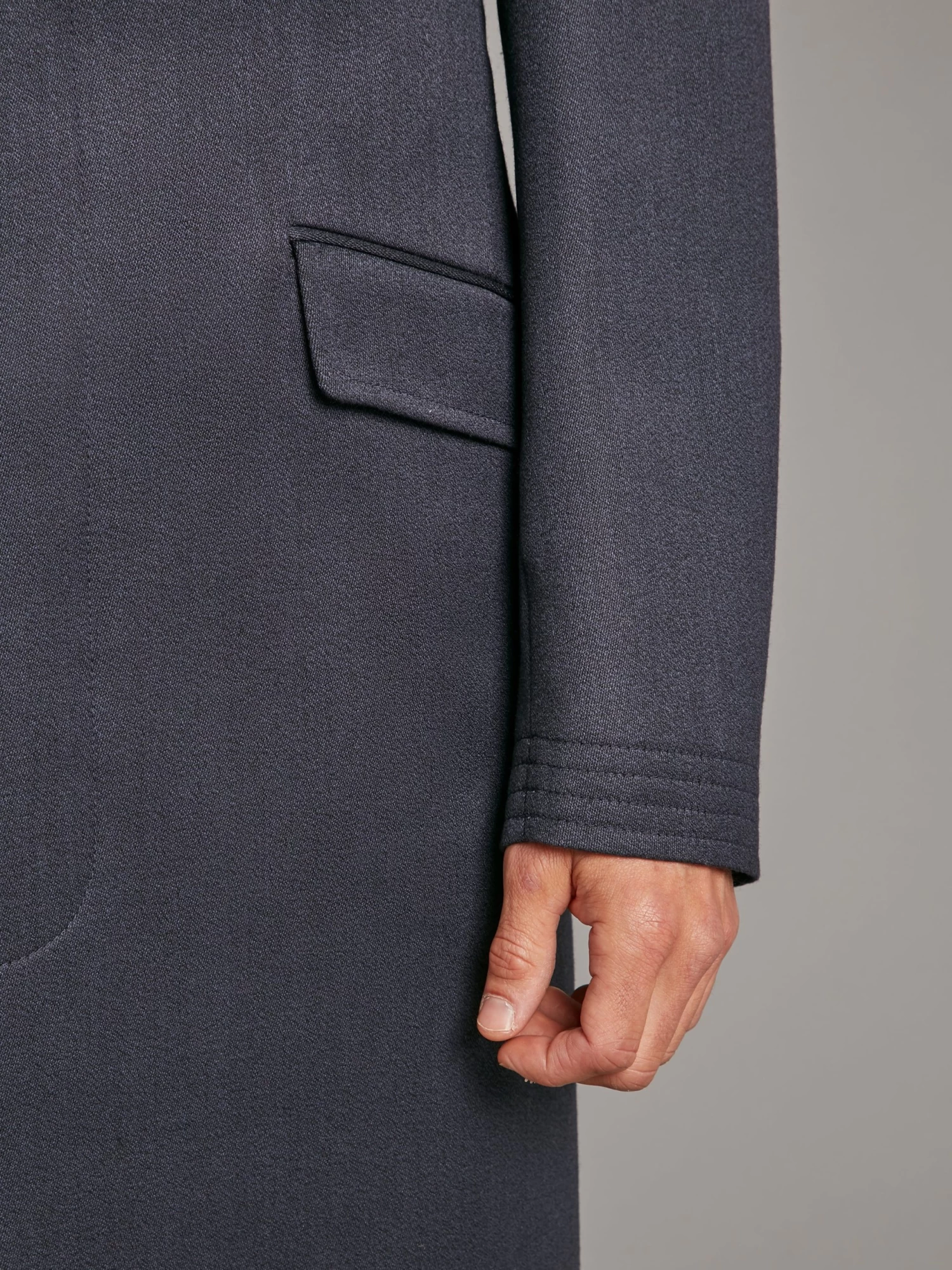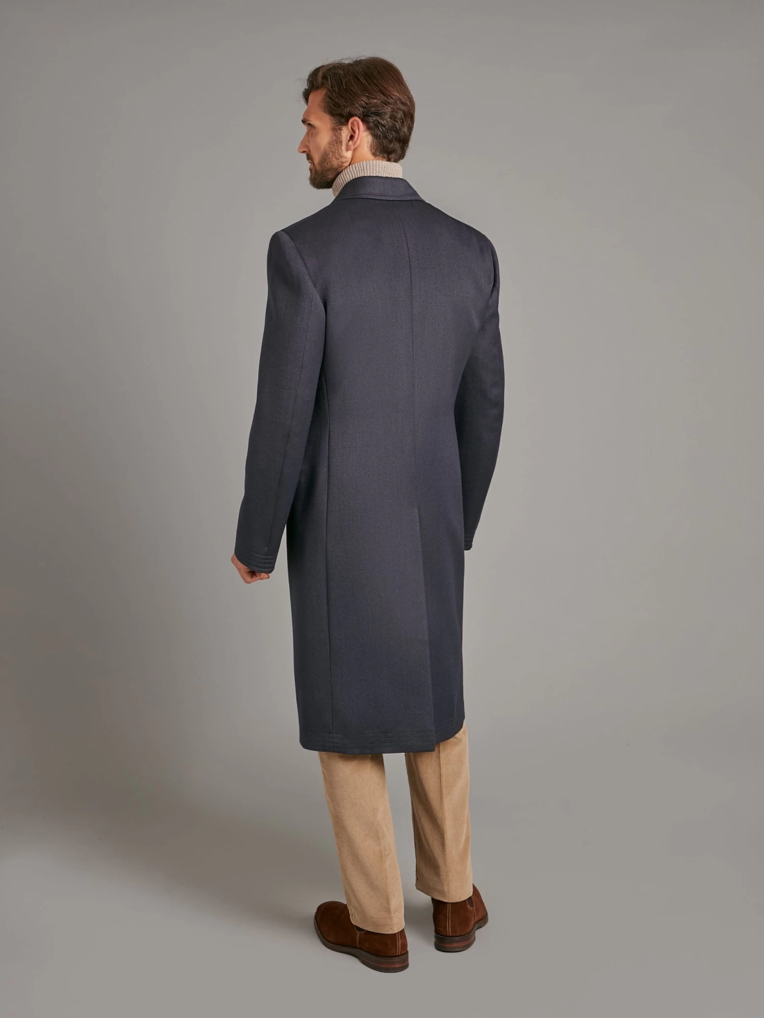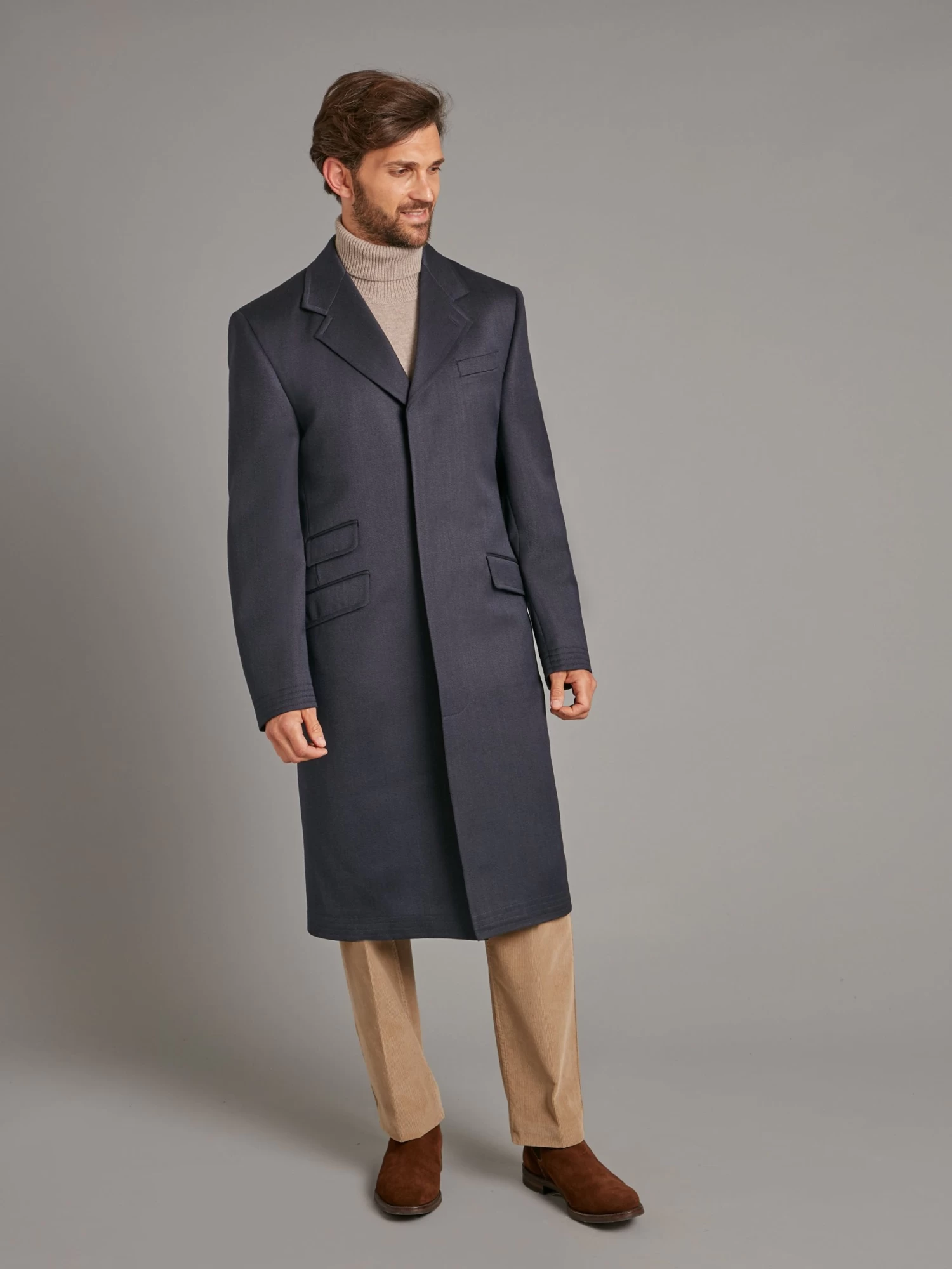 The Oliver Brown covert coat in navy is made from the finest 100% British wool in 16oz cloth, perfect for layering and everyday wear in the country or in town. They are lightweight and fully lined, featuring a notch lapel, three flap pockets and interesting stitch details at the cuff and hem.