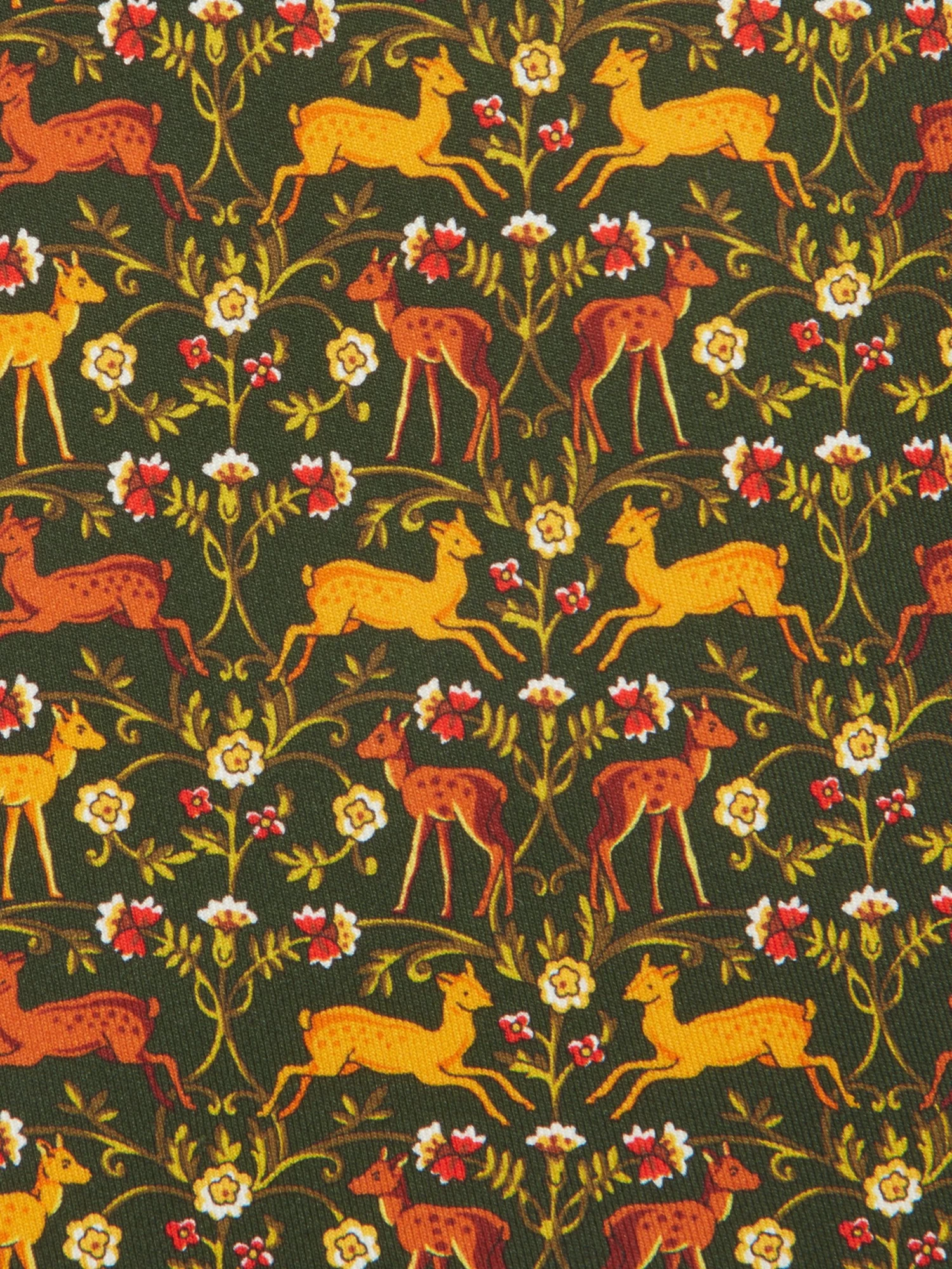 Complete the look with this woven silk tie featuring a whimsical deer motif in green. Made with the highest craftsmanship and attention to detail, it’s the perfect accessory for any formal or special occasion, guaranteed to add a touch of elegance and personality to your outfit.