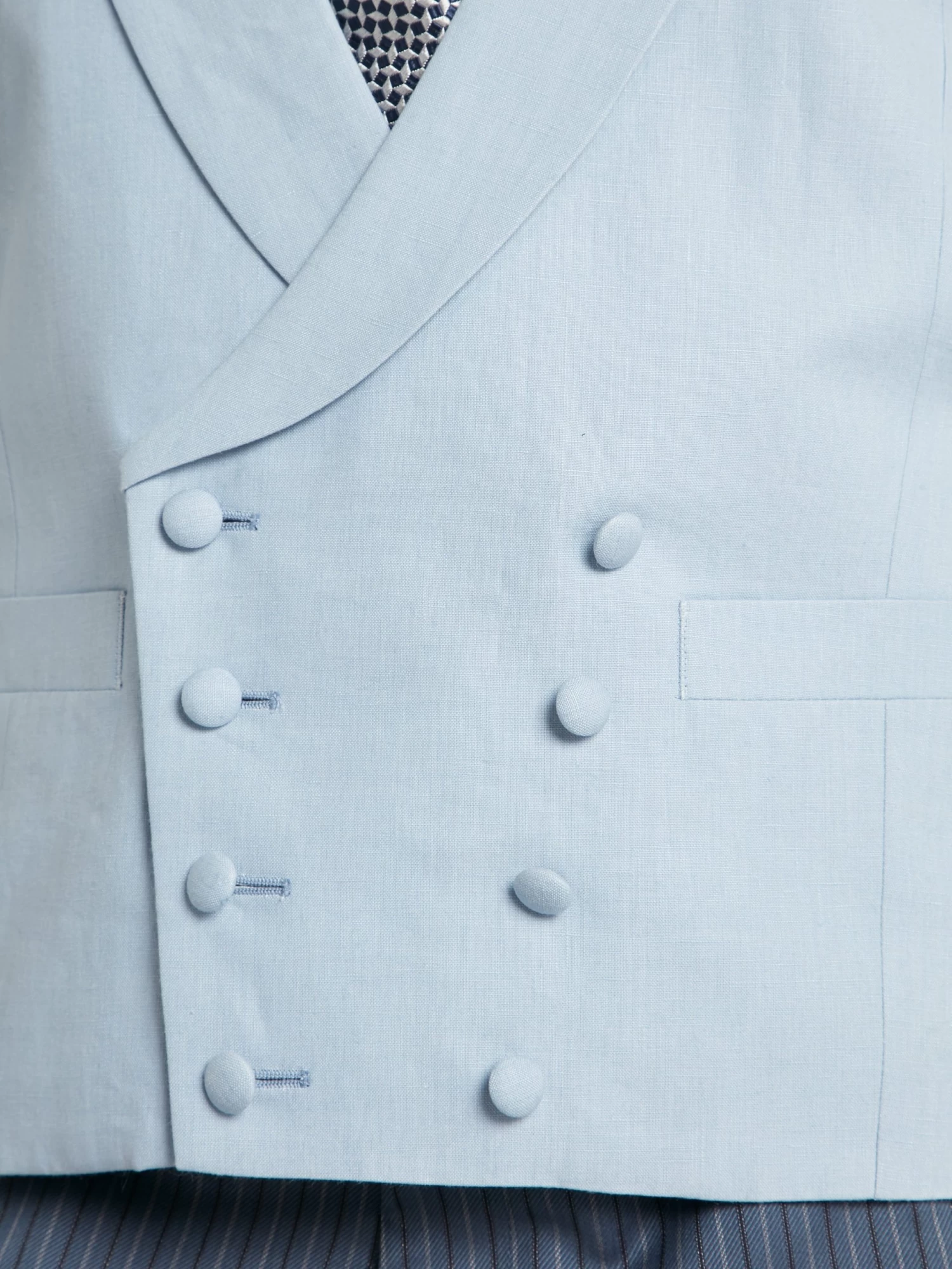 Tailored from the Oliver Brown double-breasted block for a “classic-fitted” cut, this linen waistcoat is a stalwart of traditional morning wear and is available in a palette of stylish, muted shades.
