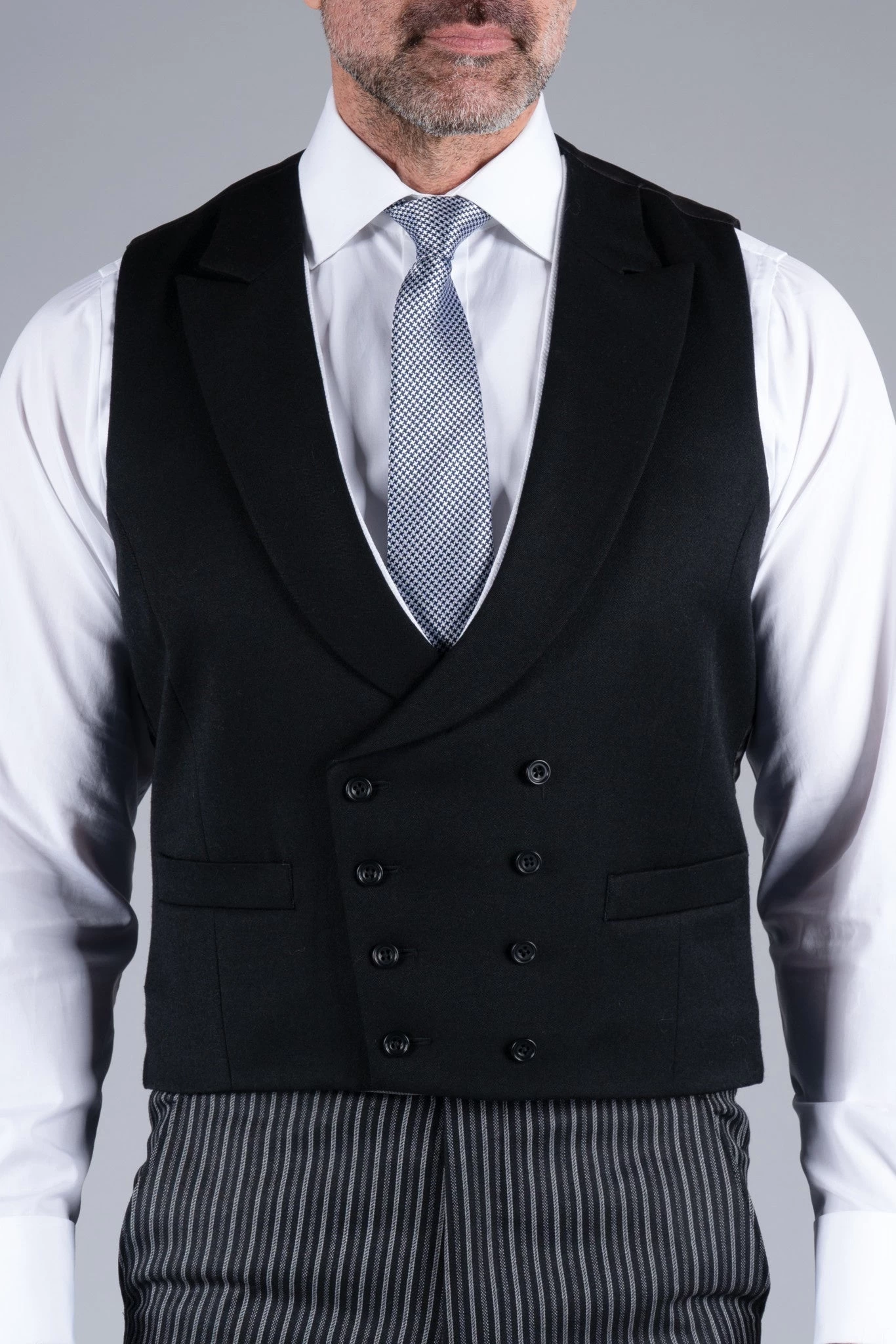 Featuring a peak collar, this timeless double breasted waistcoats brings added elegance to a morning outfit. Crafted from pure wool, the waistcoats are classically cut with a cream satin back-panel, traditional waist adjuster, and marcella slips.
