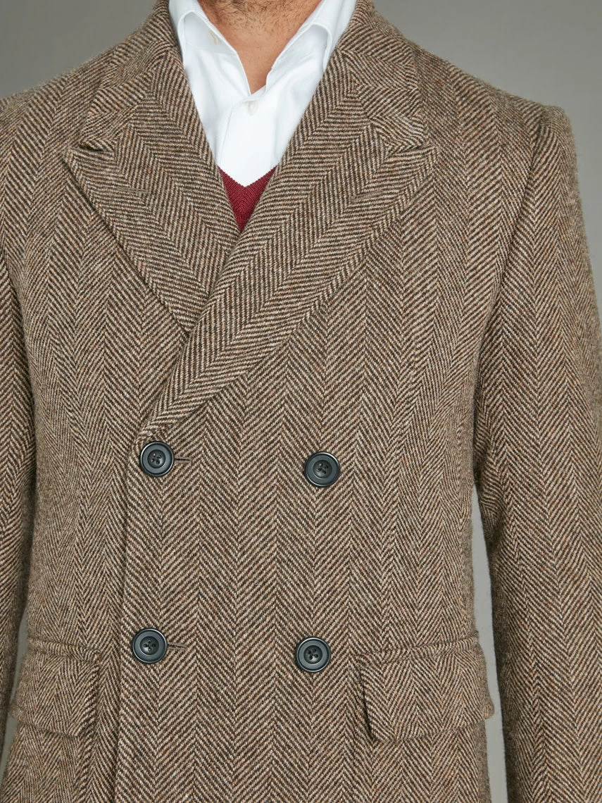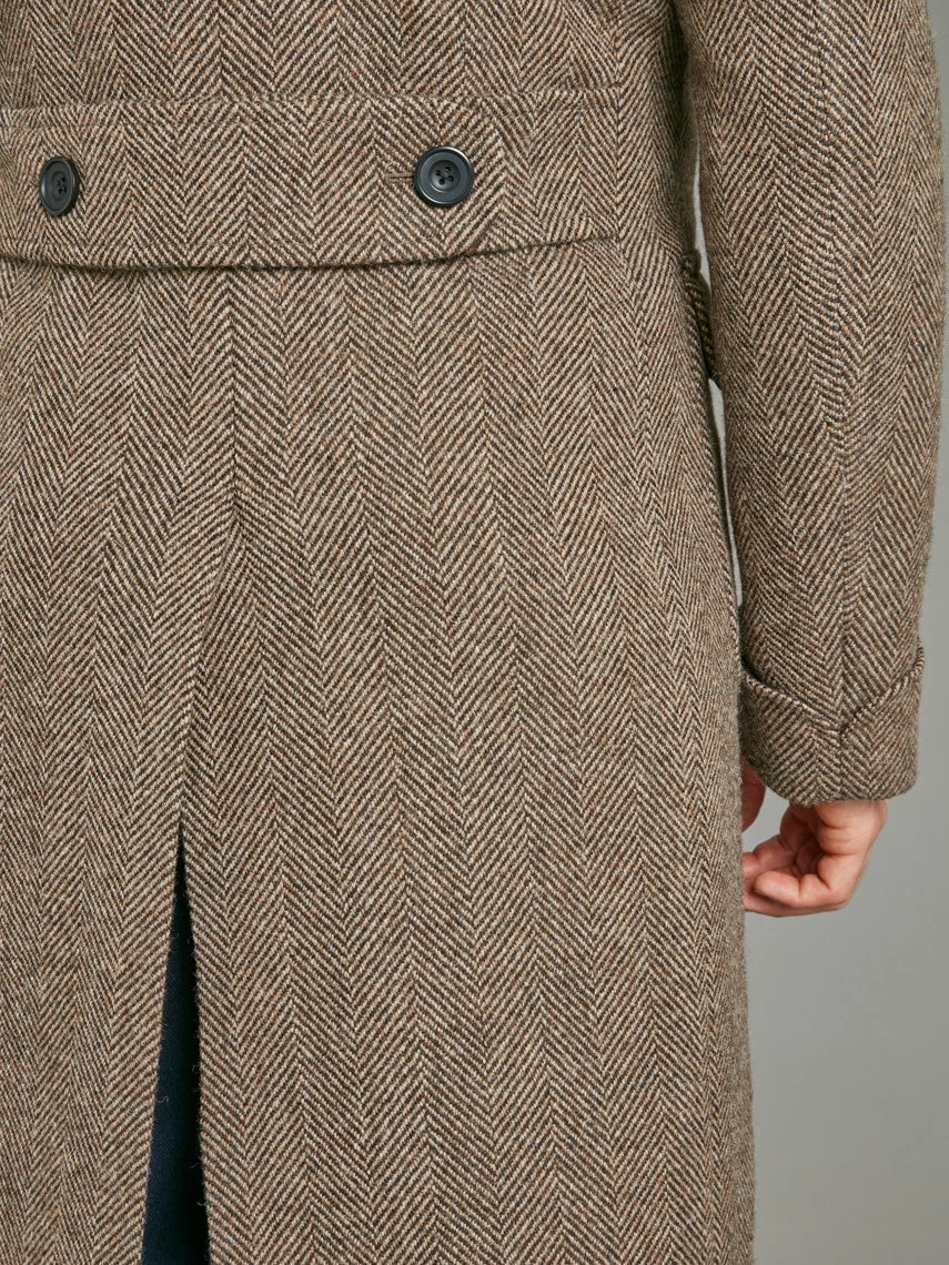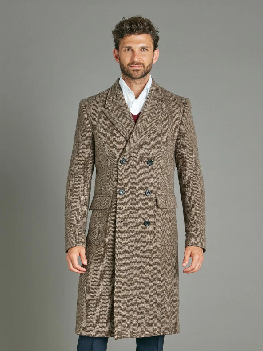New this Autumn Winter Season, this Double Breasted Overcoat is impeccably smart, with a fitted cut. Finished in a rich brown herringbone, this an enduring piece you’ll wear season after season, and is no match for the brisk English winter.