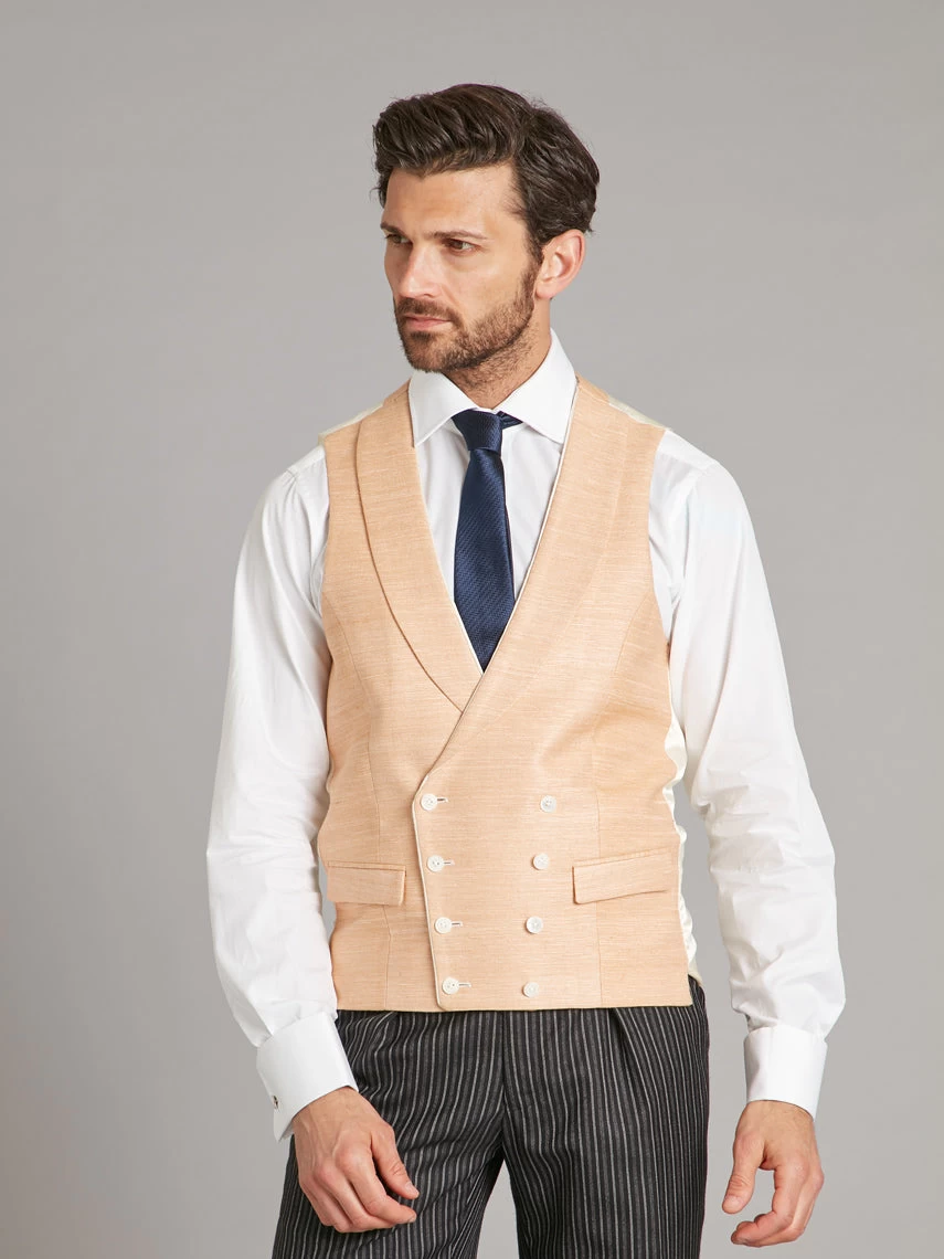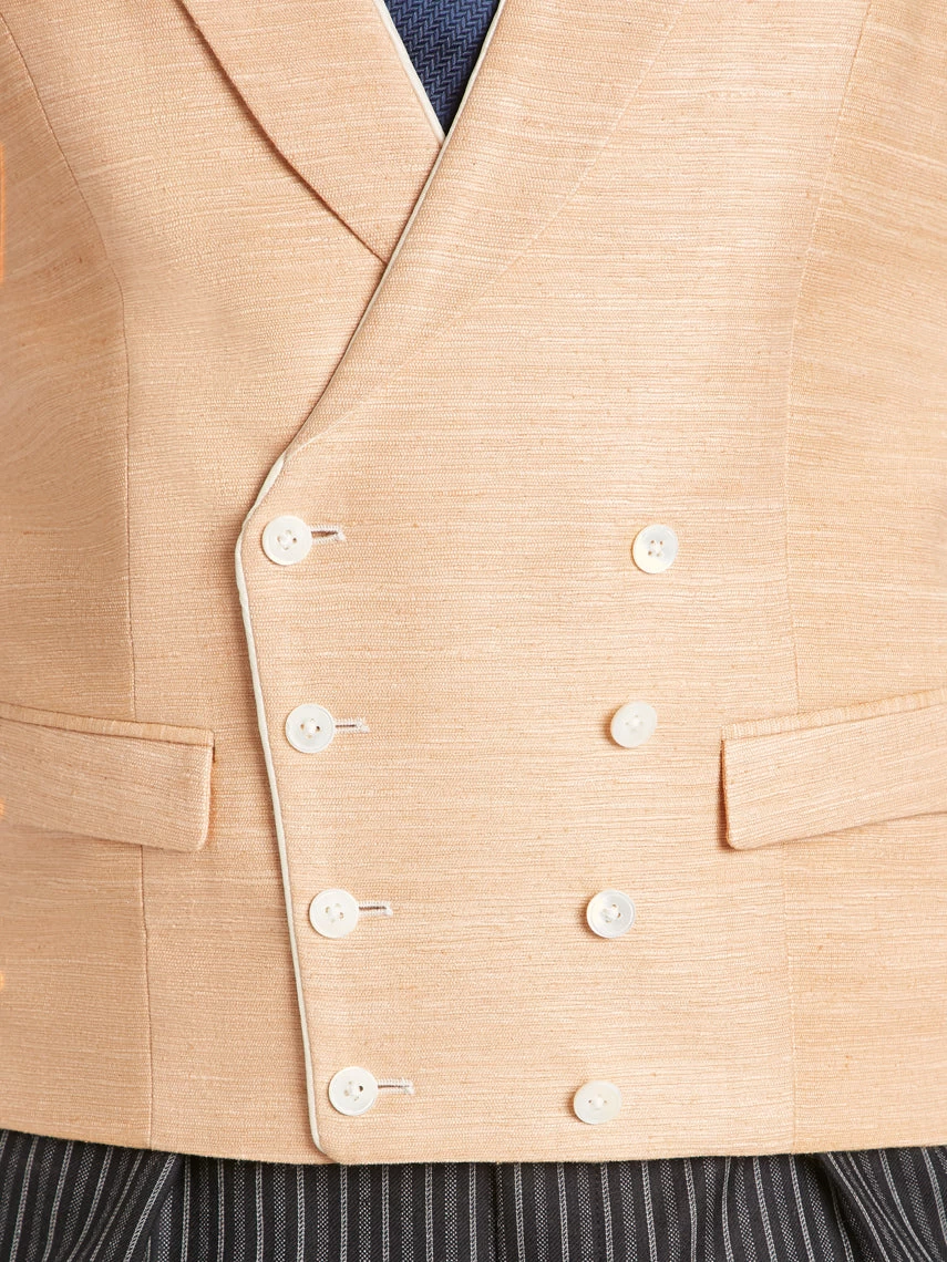 This luxurious double-breasted waistcoat has a classic-fitted cut. Finished in a natural woven silk for an exceptionally rich texture and depth of colour. Available in a range of stylish, muted shades, perfect for a wedding or Royal Ascot
