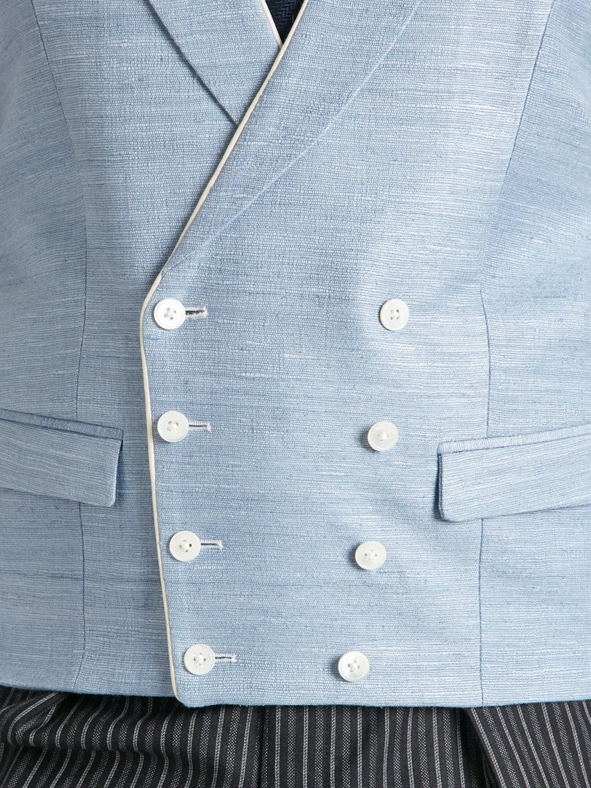 Double Breasted Waistcoat Woven Silk – Mid Blue