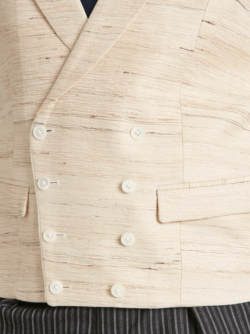 This luxurious double-breasted waistcoat has a classic-fitted cut. Finished in a natural woven silk for an exceptionally rich texture and depth of colour. Available in a range of stylish, muted shades, perfect for a wedding or Royal Ascot