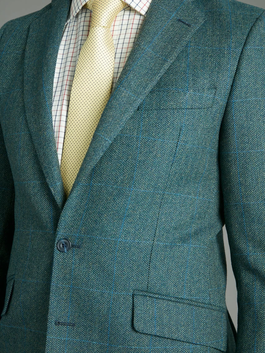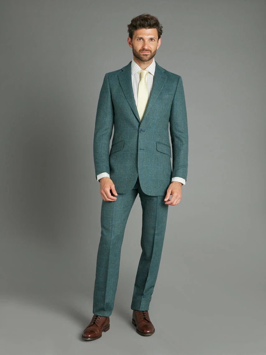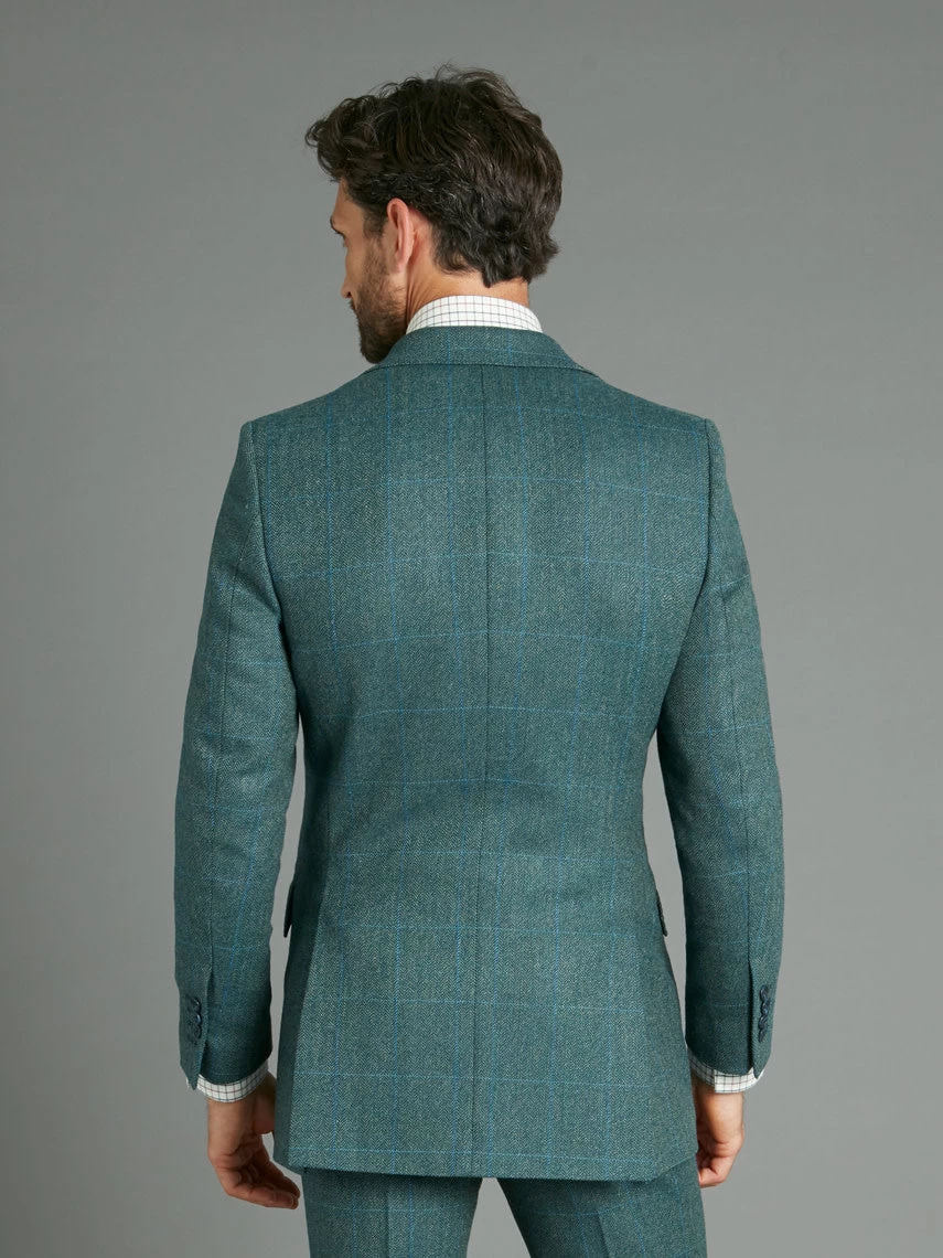 New for this season, this expertly tailored Averon tweed Eaton jacket is finished in a beautiful teal with a subtle blue check. Ideal for the city or the country, whether stalking through heather or strolling through a park in town, this tweed is sure to impress.