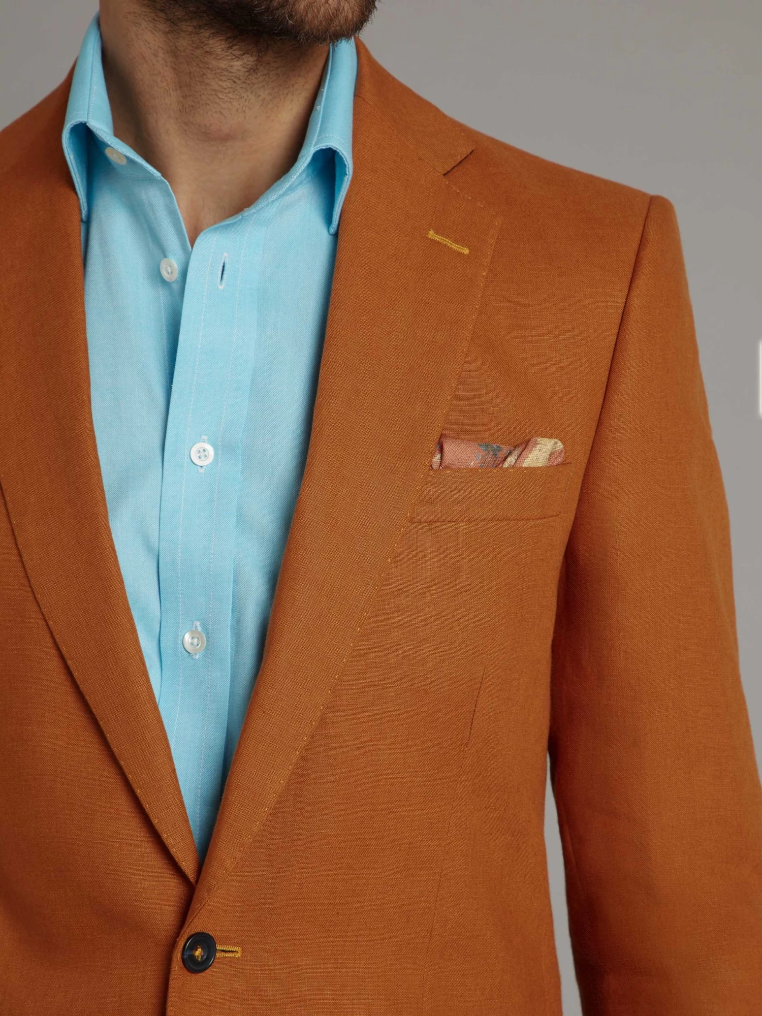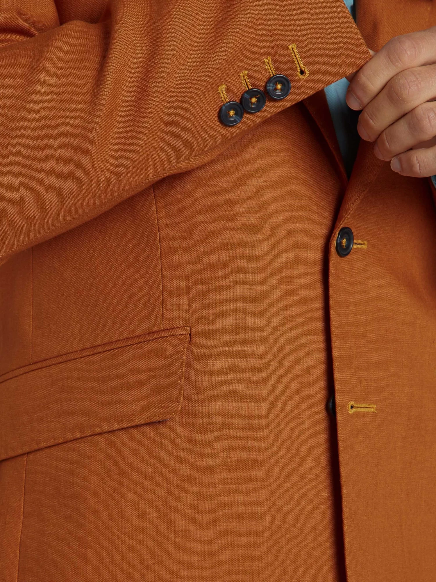 Made from our single-breasted Eaton block, this jacket features a timeless-fitted cut. Crafted from rust-colored linen fabric made in England, and complete with a canvassed chest-piece and functional four-button cuffs, this jacket is a lasting addition to your wardrobe that will make a bold statement.