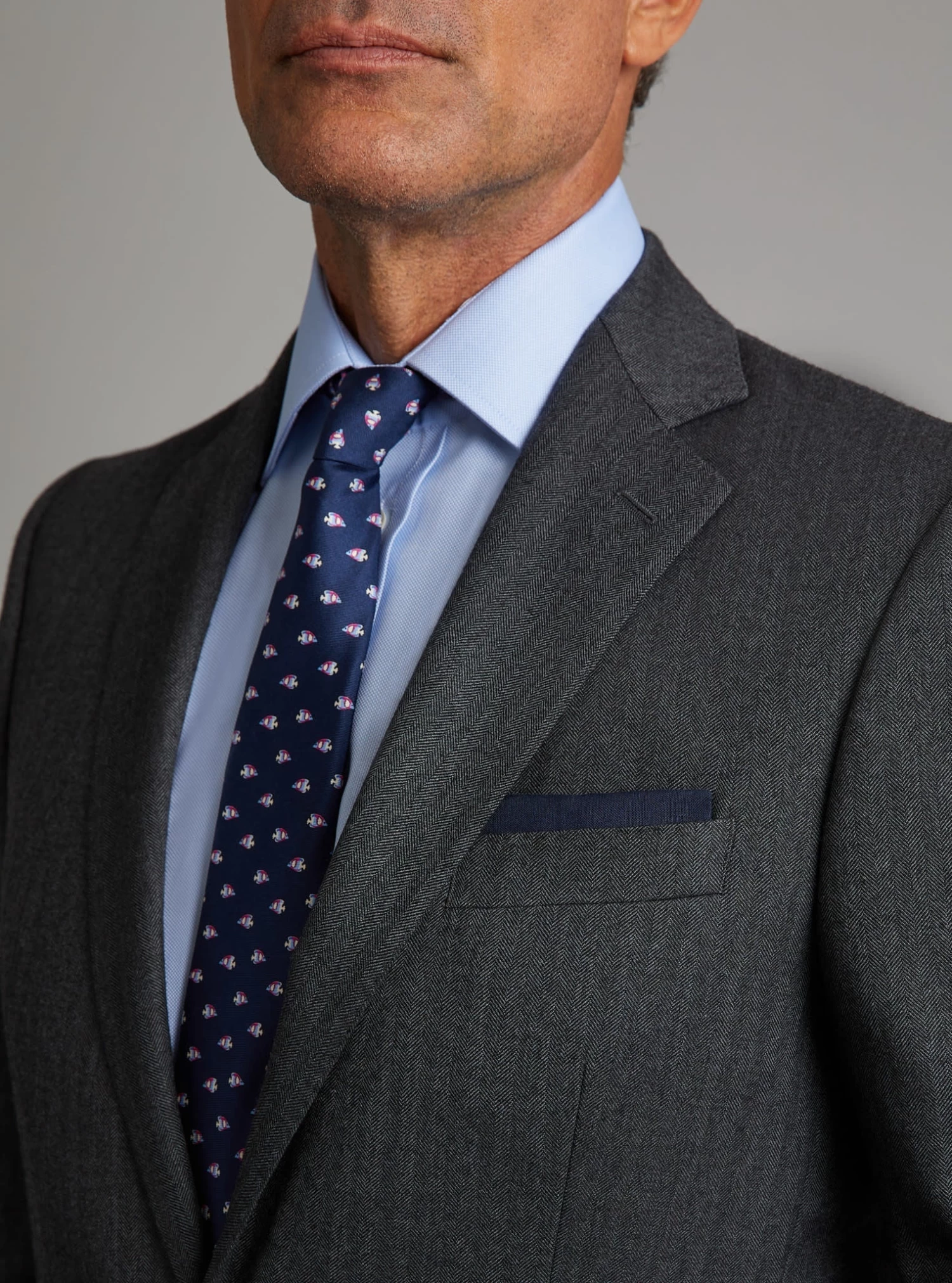 Oliver Brown suits have an English, classic-fitted cut for a traditional but tailored suit. Our jackets offer a tailored fit with structured shoulders. Our trousers sit at the natural waist and have straight-cut legs. Suits fit true to size, take your normal size.