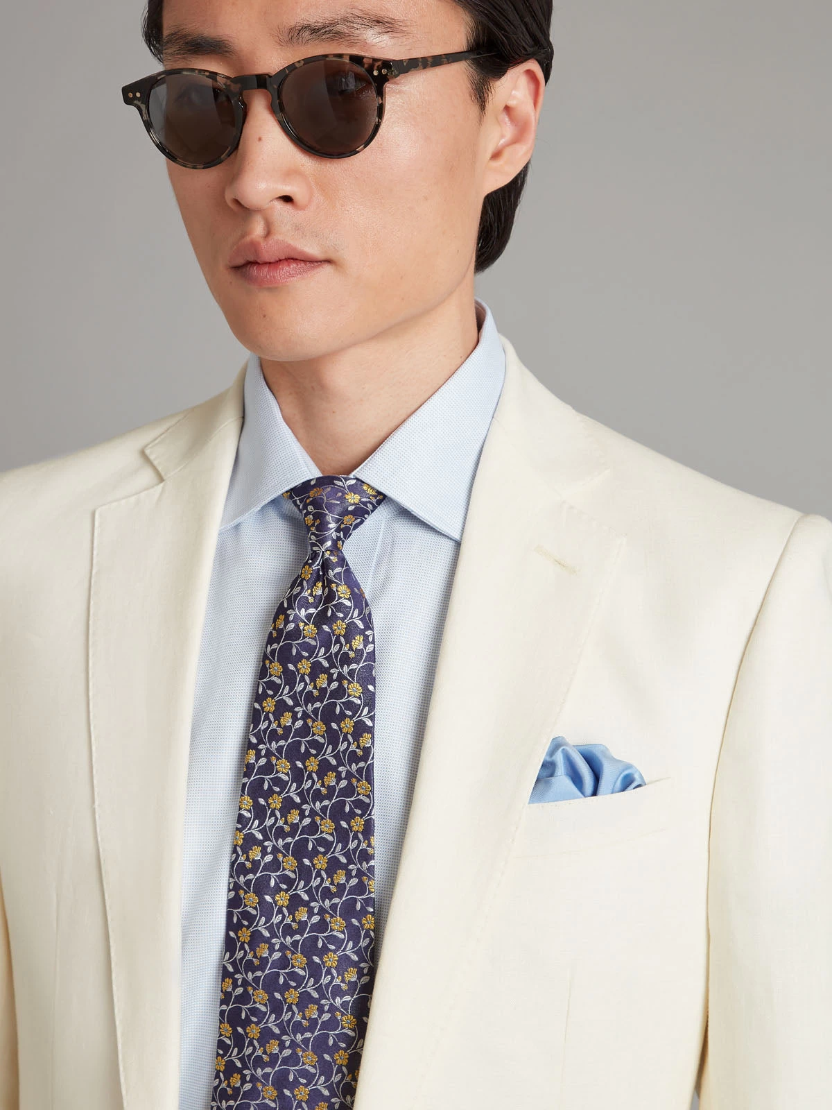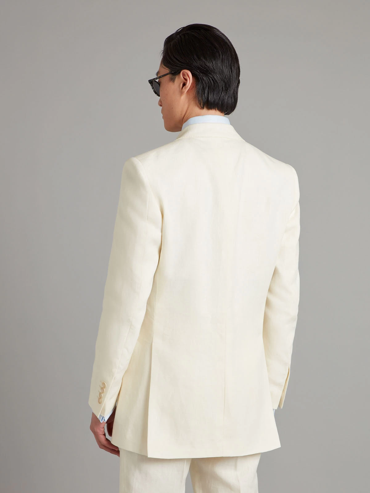 This timeless ivory suit is cut in Oliver Brown’s Eaton block and is made from 100% linen (255gms); selected for its durability and breathability, it is perfect for summers at home or abroad.