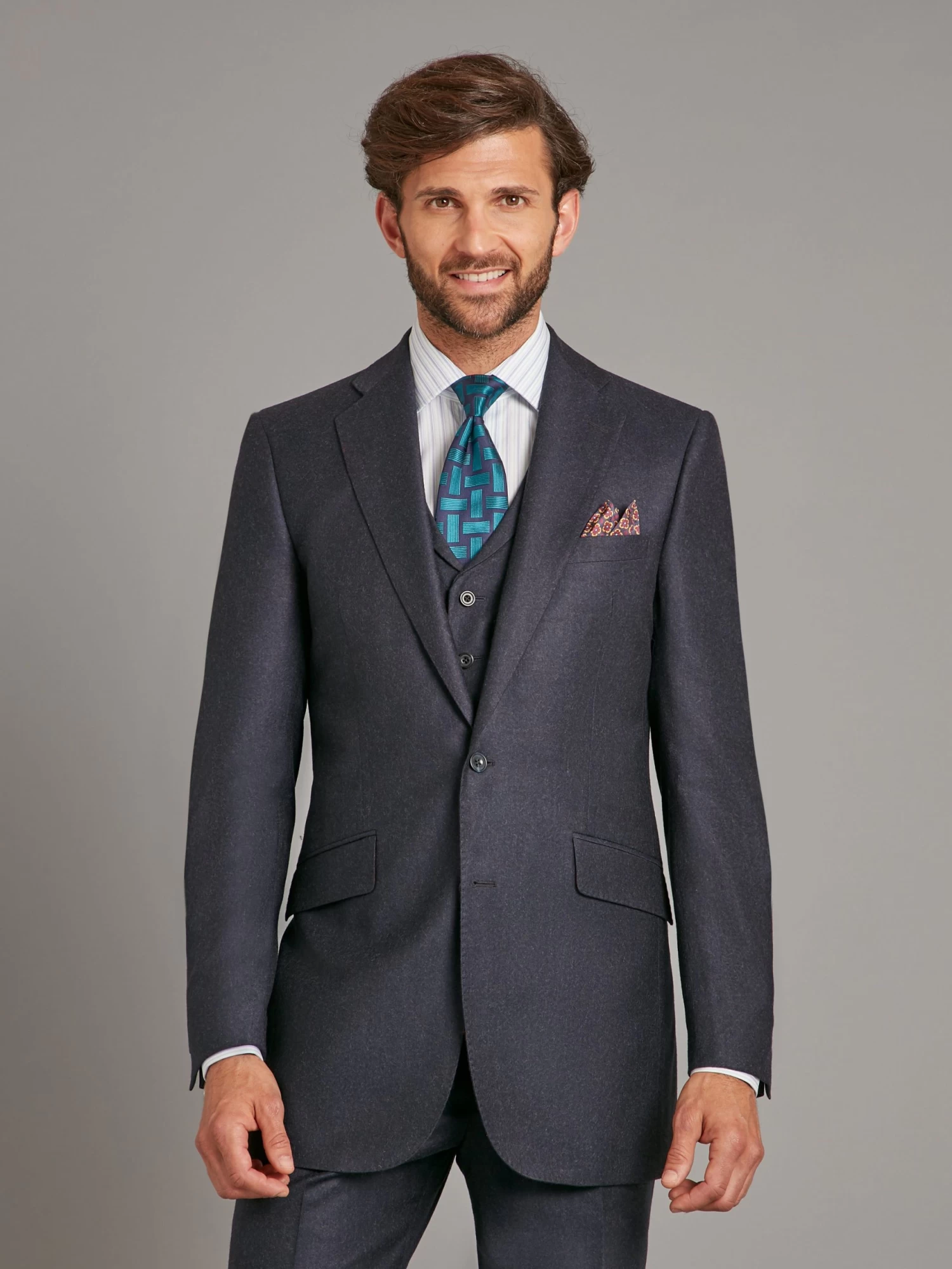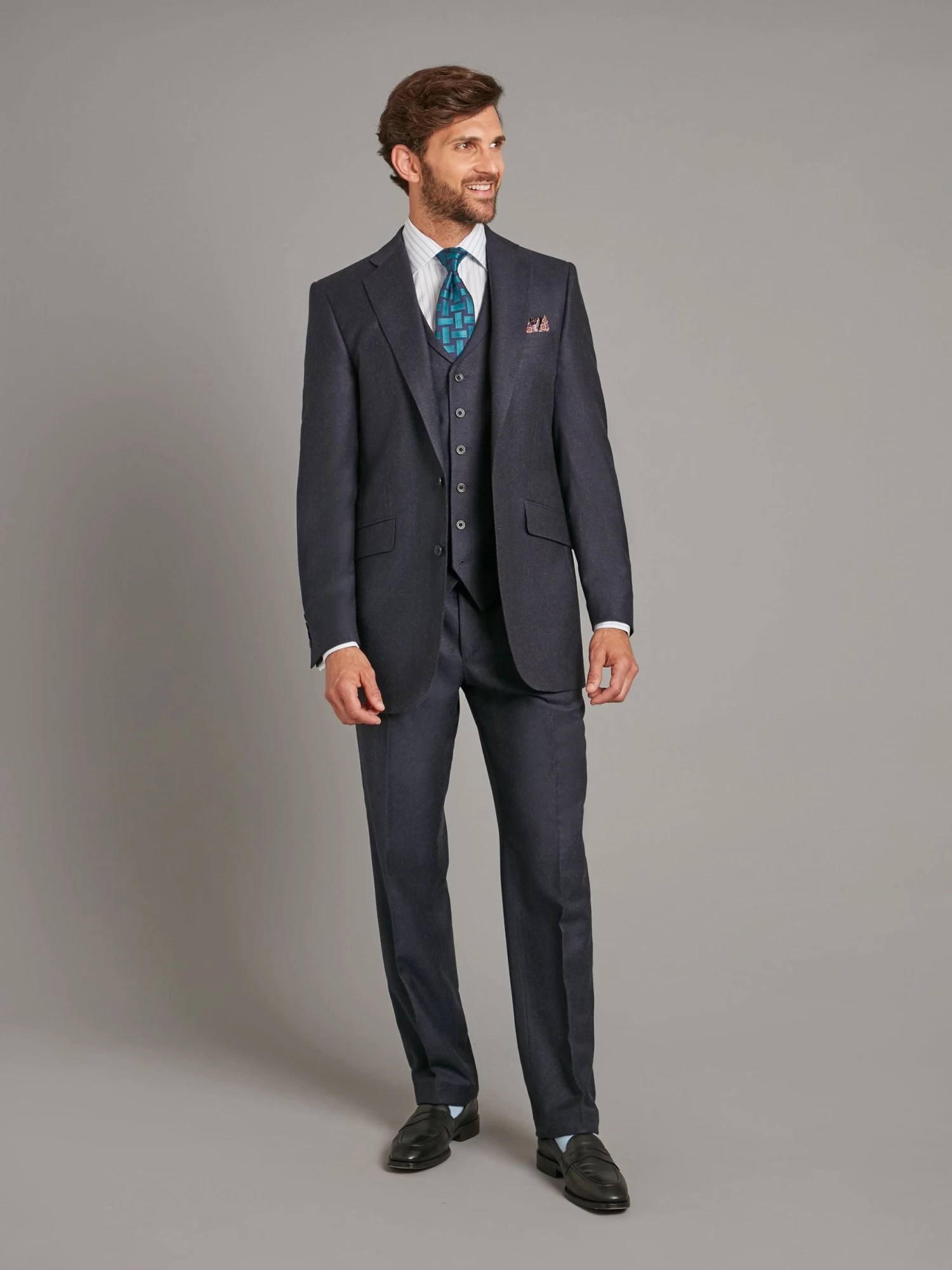 The Eaton Suit in Navy Flannel is the perfect addition to any Autumn/Winter wardrobe. Crafted with 100% wool, this classic-fitted jacket is both soft and durable, perfect for both city and country adventures. It features a notch lapel, four-button working cuff and double vents.