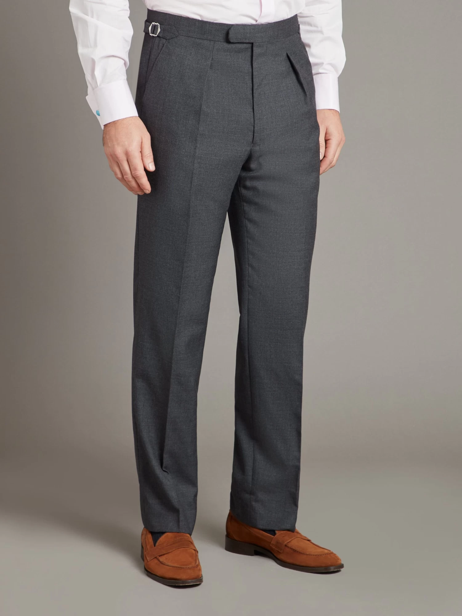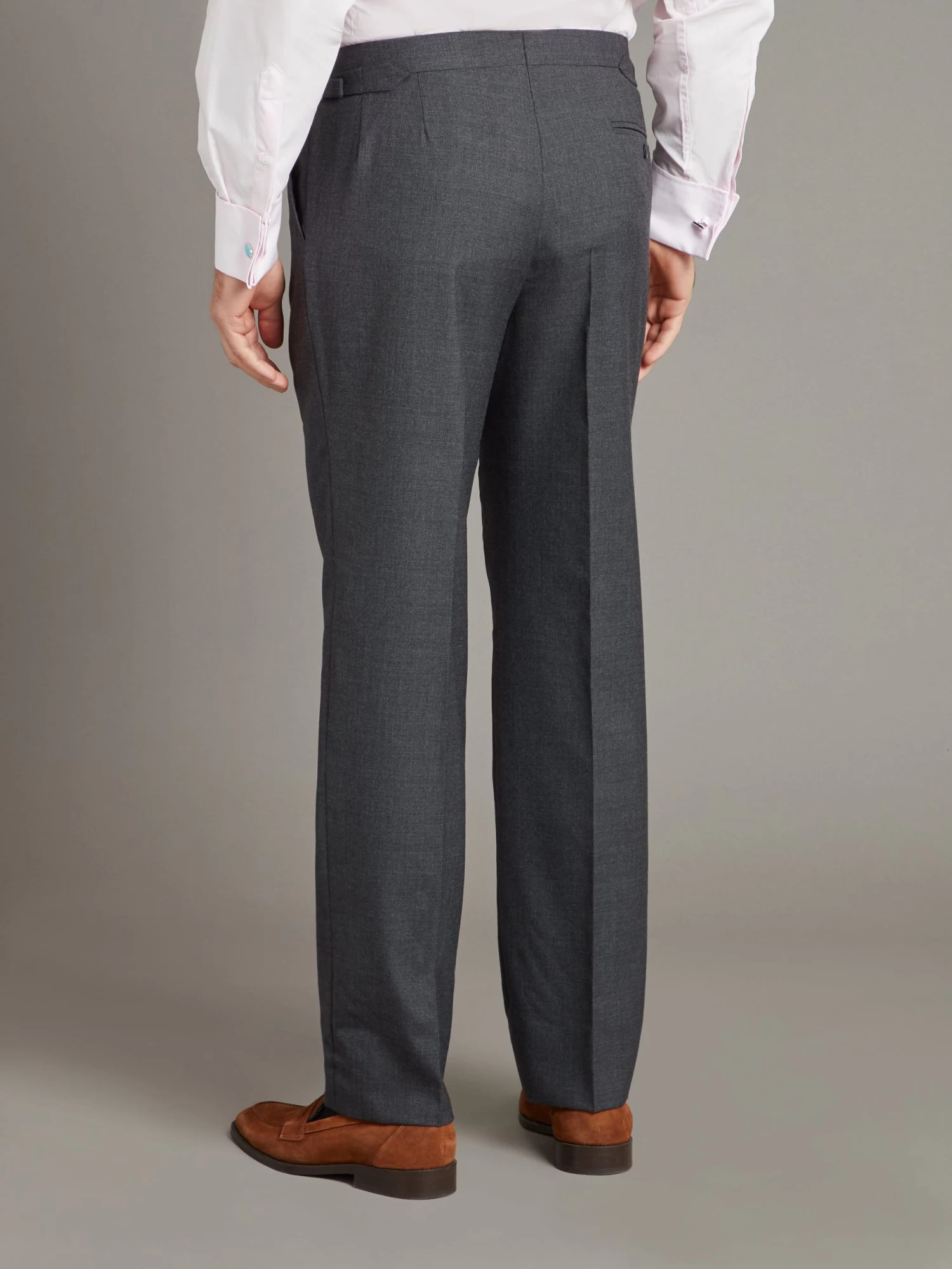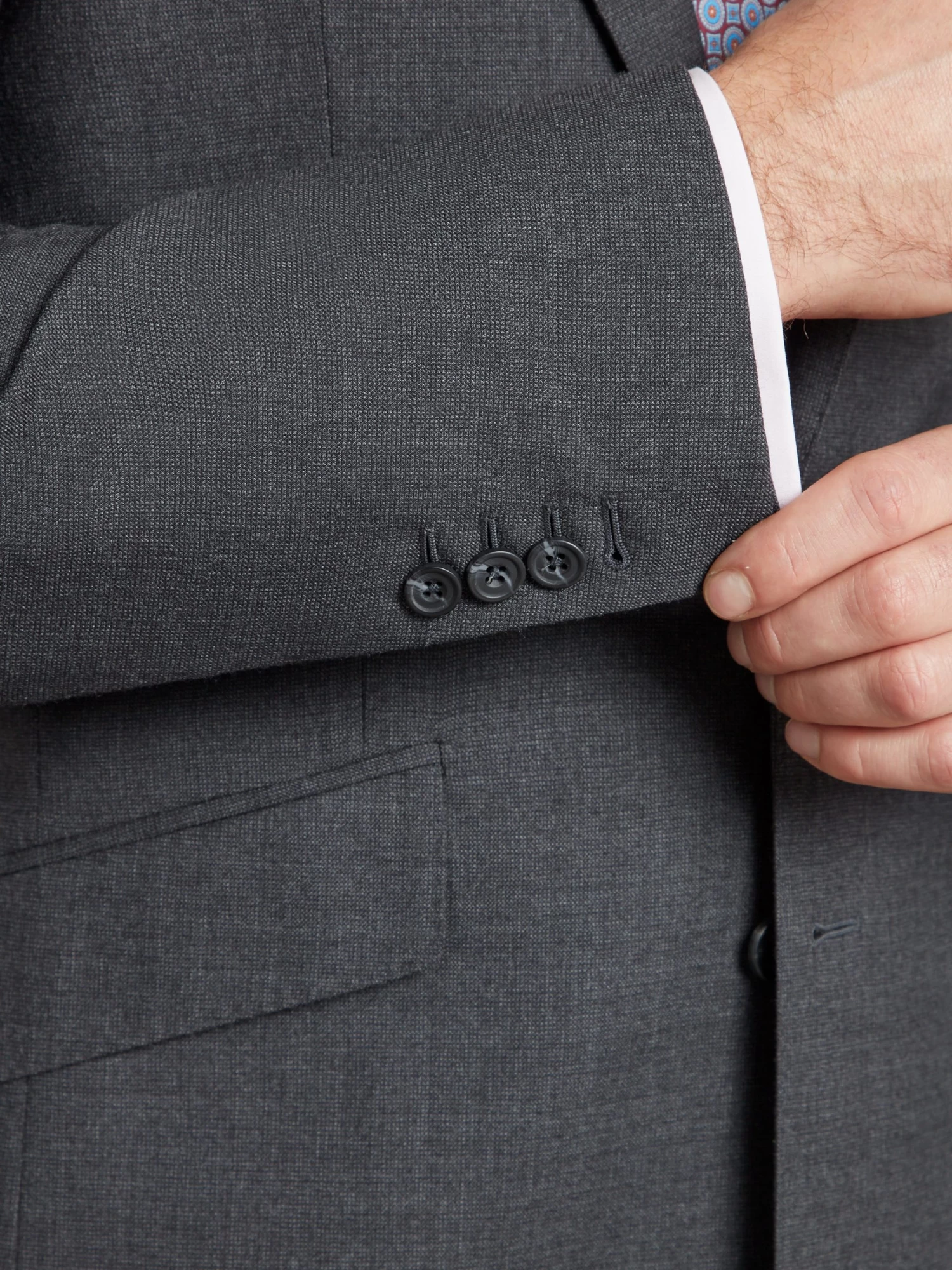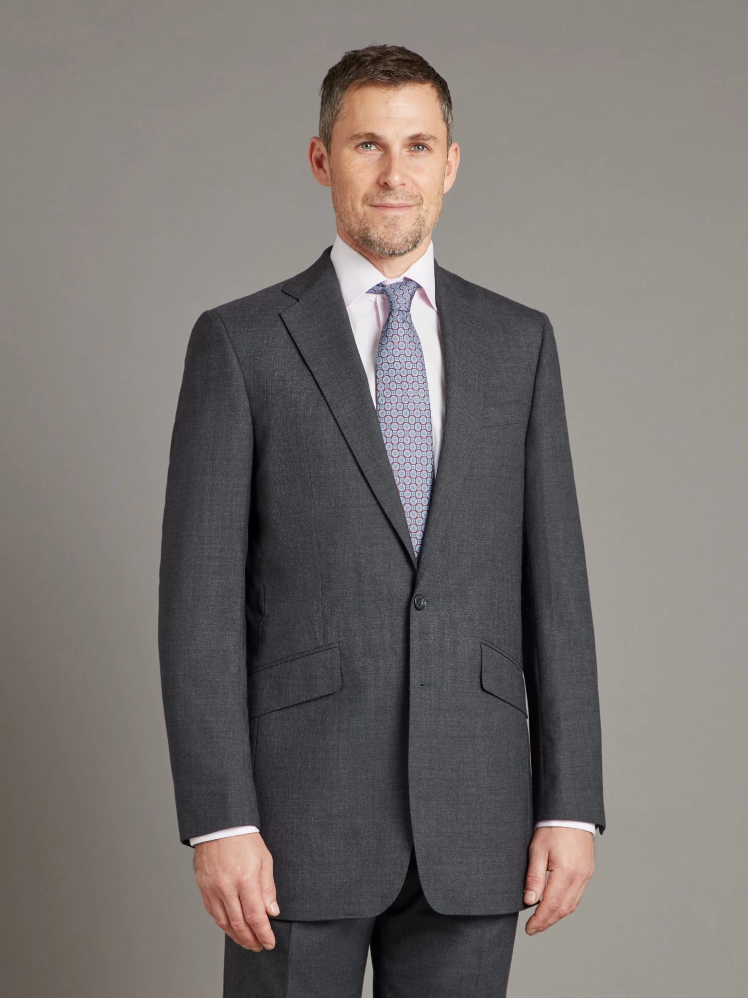 Tailored from our single-breasted Eaton block, this grey suit has a classic-fitted cut and a soft hand with super 100’s cloth; it features a notch lapel and four-button working cuff. Made with 100% wool from a Yorkshire mill, it’s lightweight, comfortable and can be worn throughout the year.
