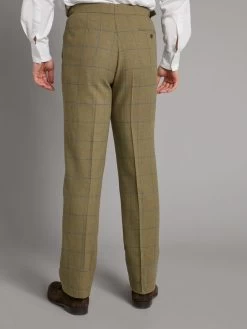 These braces are made from boxcloth, a pure wool shrunk to half its normal size to create a dense fabric. Made in England, the leather ends are hand stitched, while the back of the braces incorporate a discreet matching elasticated segment.