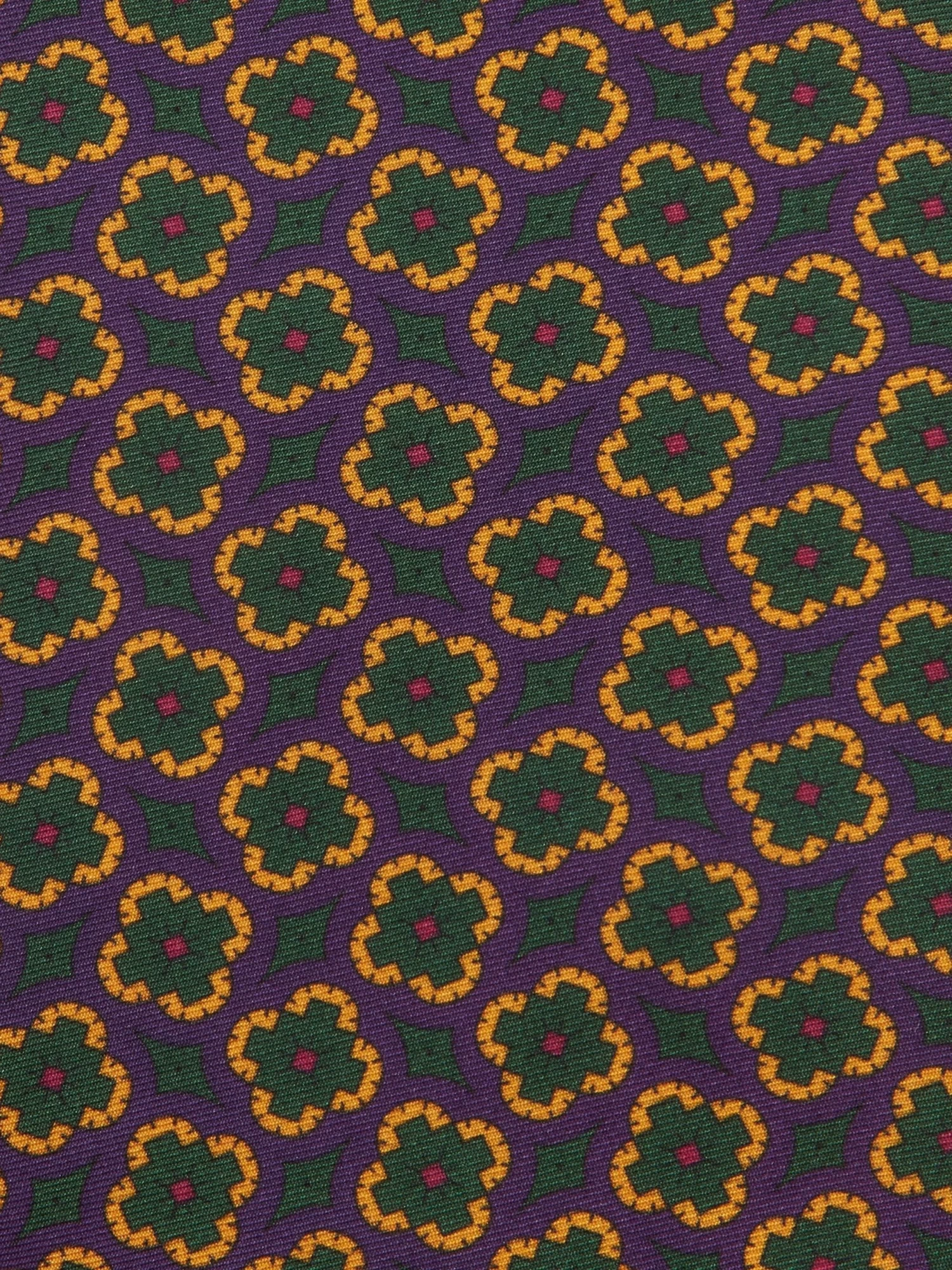 Purple tie with a green floral print, woven with the finest silk and made in the UK.