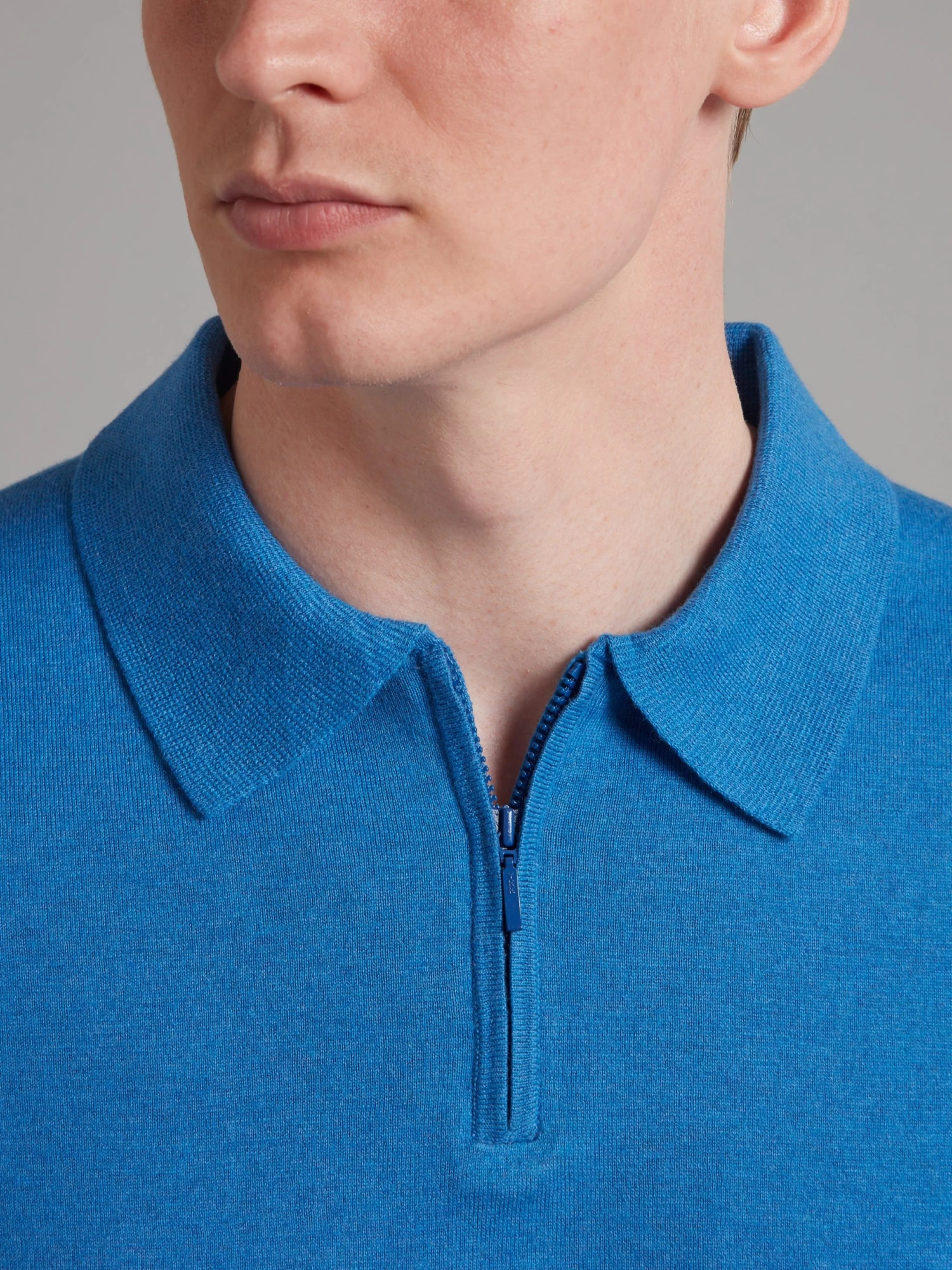 Half Zip Silk Blend Polo Shirt – Blue