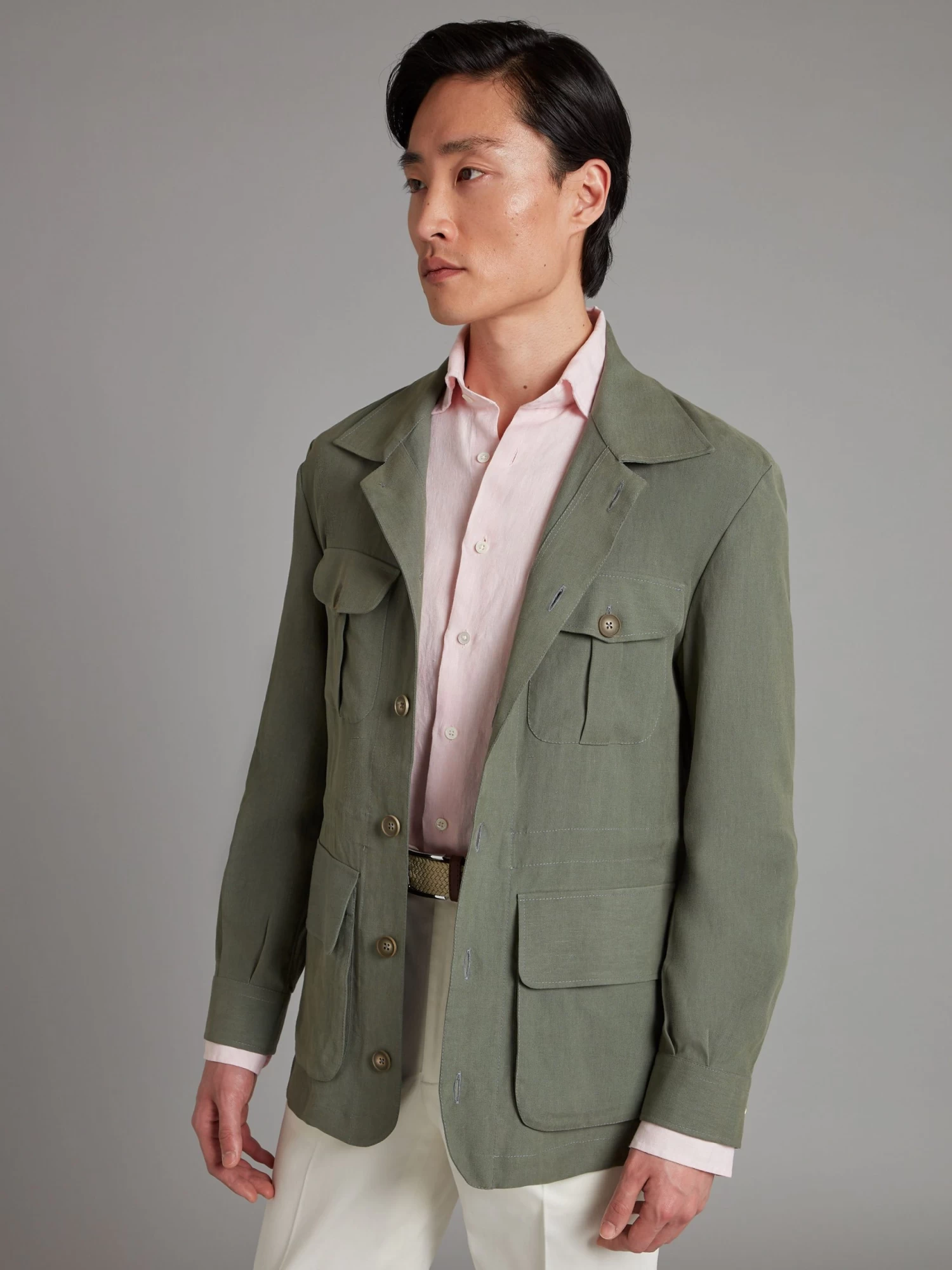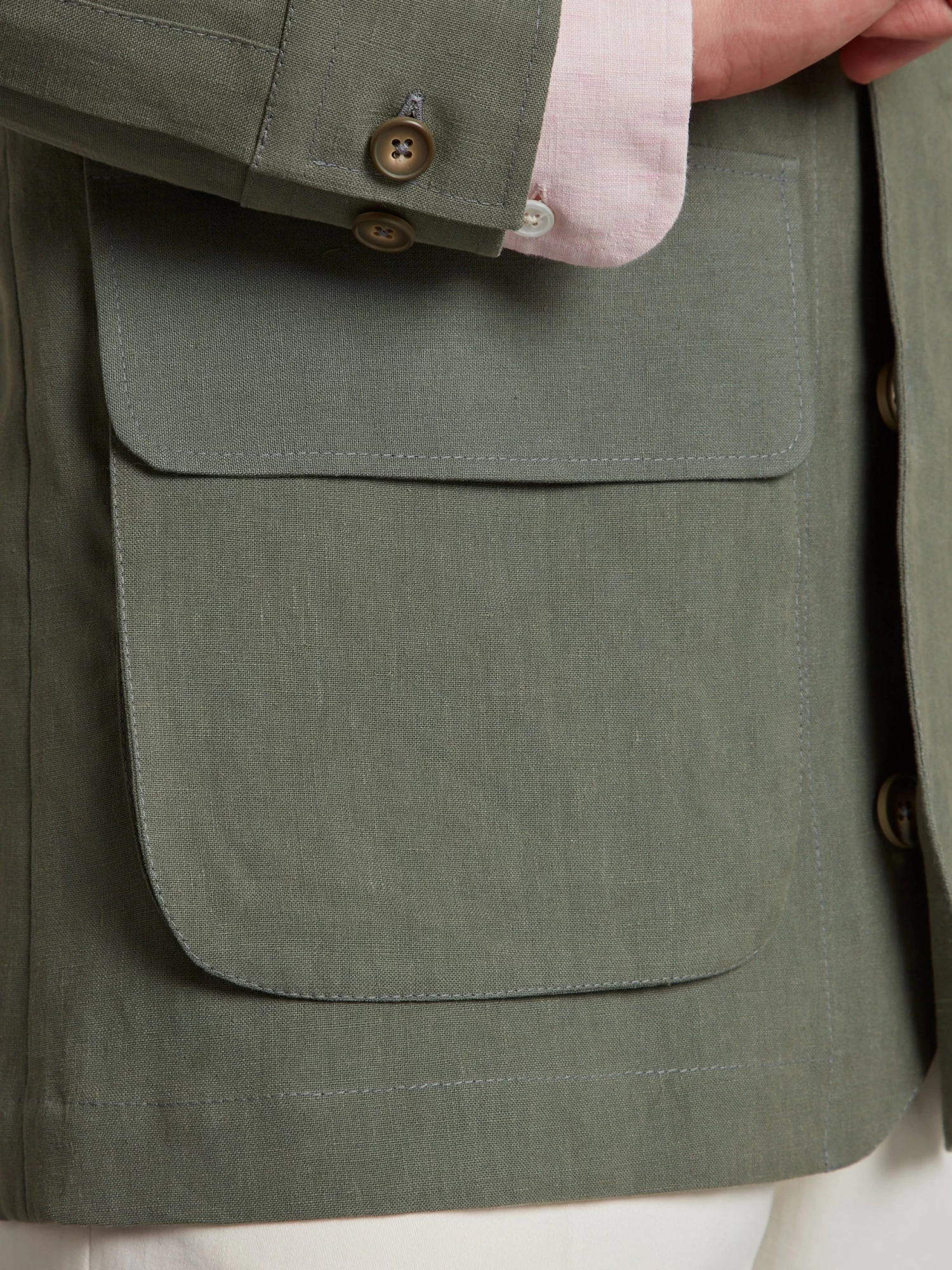 Oliver Brown’s Hemingway jacket in green linen is the perfect off-duty staple. Featuring a drawstring waist, patch pockets and a classic shirt collar, this jacket will look effortlessly stylish paired with your favourite casual trousers or city shorts in the warmer months.