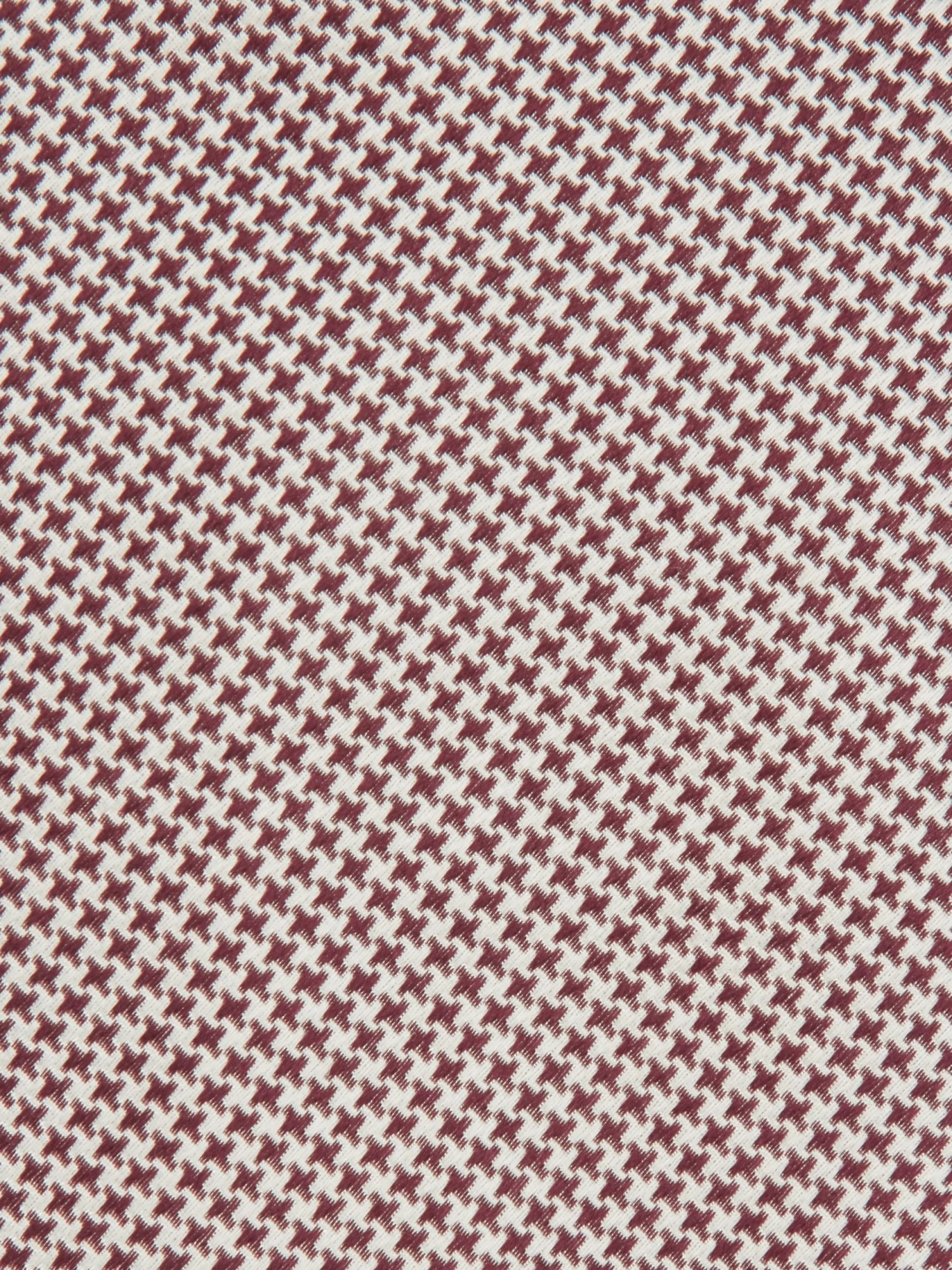 Complete the look with this woven silk tie featuring a small burgundy houndstooth pattern. Made with the highest craftsmanship and attention to detail, it’s the perfect accessory for any formal or special occasion, guaranteed to add a touch of elegance and personality to your outfit.