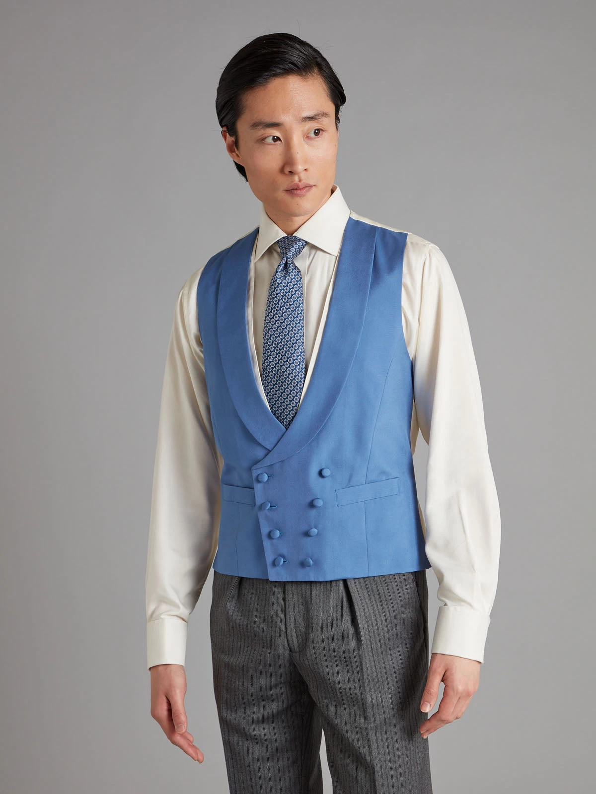 Lightweight Double Breasted Waistcoat – Soft Silk Mid Blue
