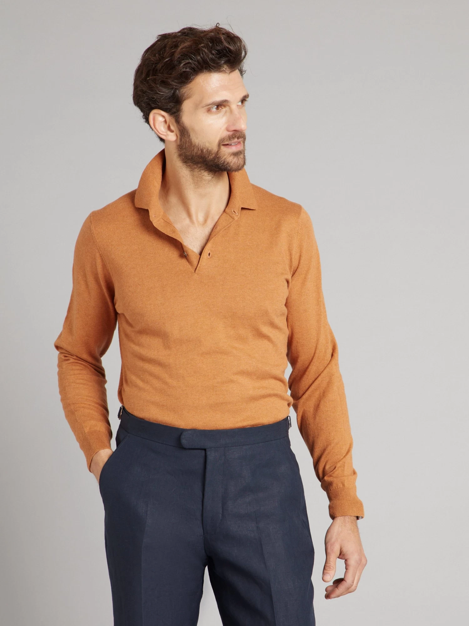 Long Sleeve Silk Blend Polo Shirt – Caramel