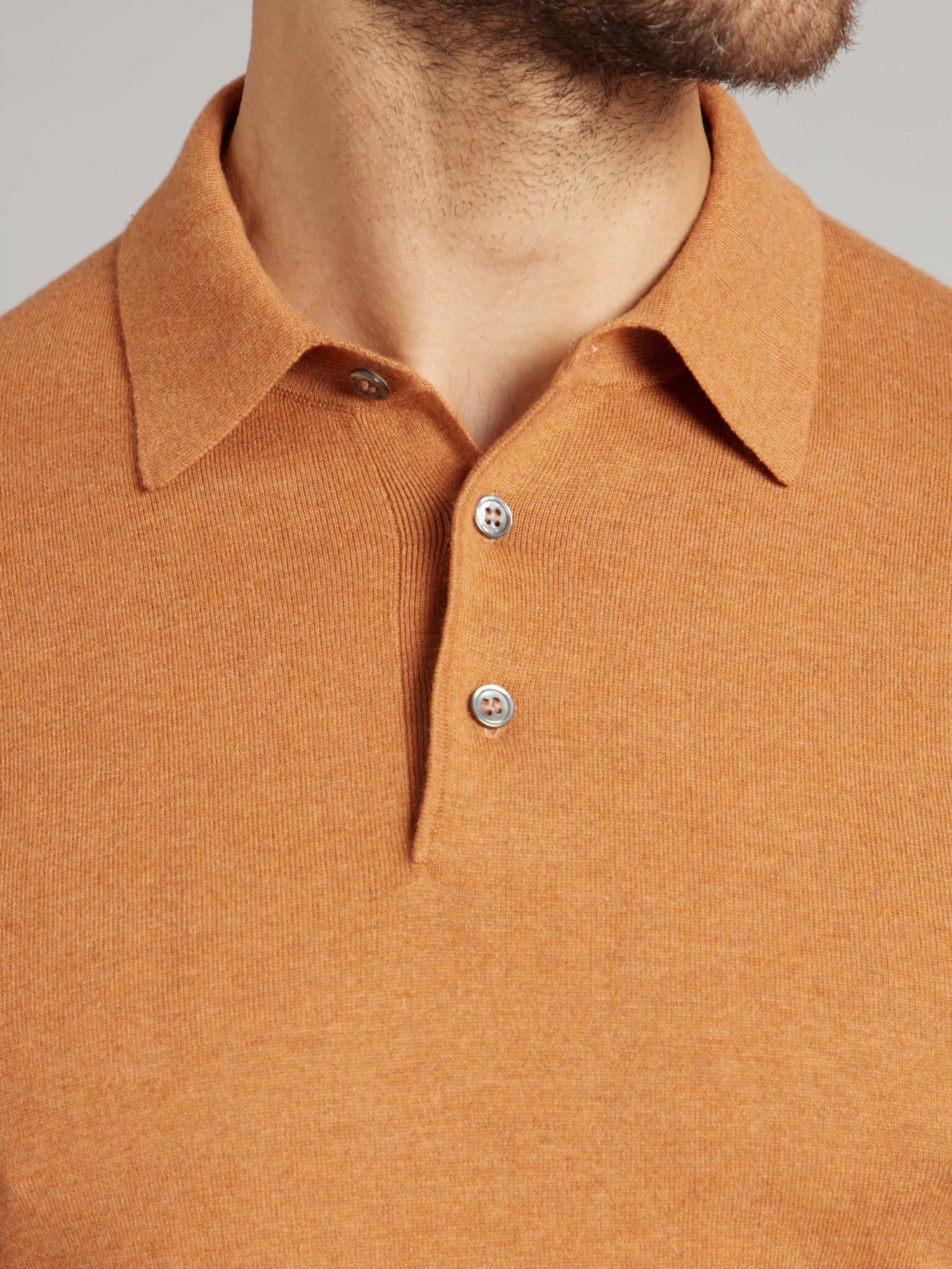 Knitted to shape for a comfortable fit, this polo shirt offers incredible softness and breathability. The caramel colour is a luxurious, easy-to-style addition to your summer wardrobe.