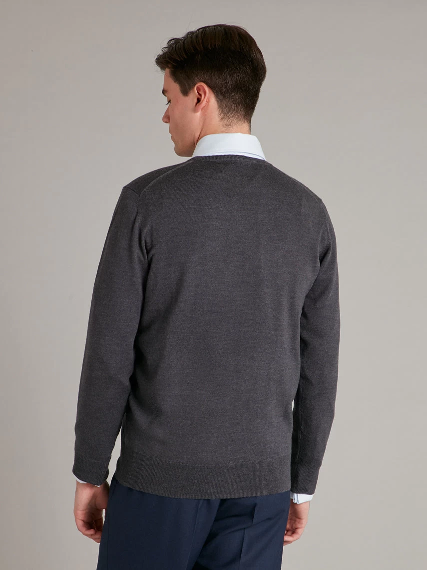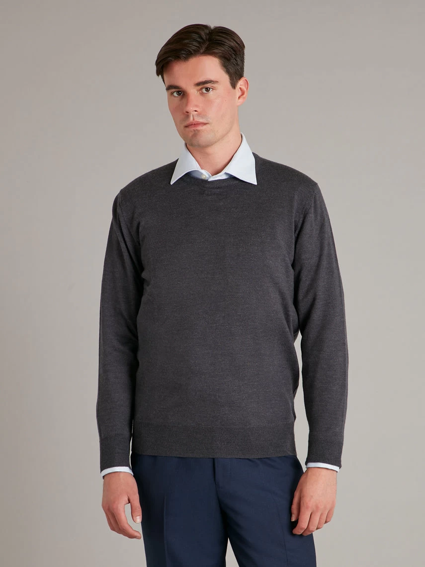 This classic crew neck jumper in charcoal grey is fully fashioned and made from the finest grade of merino wool for a soft and enduring finish. Available in a spectrum of colourful shades this jumper is a timeless wardrobe essential