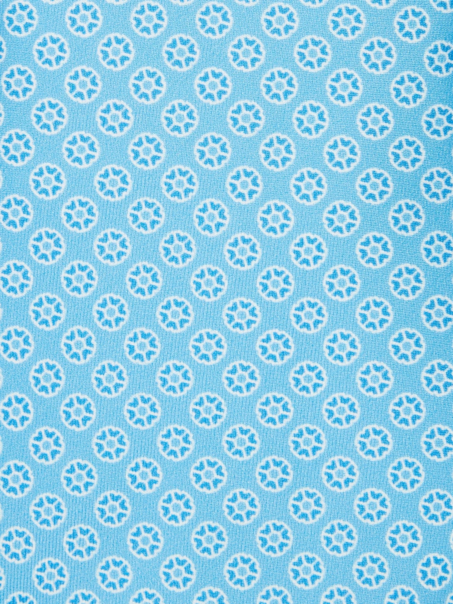 Complete the look with this blue silk tie featuring a mini medallion motif. Made with the highest craftsmanship and attention to detail, it’s the perfect accessory for any occasion, guaranteed to add a touch of elegance and personality to your outfit.