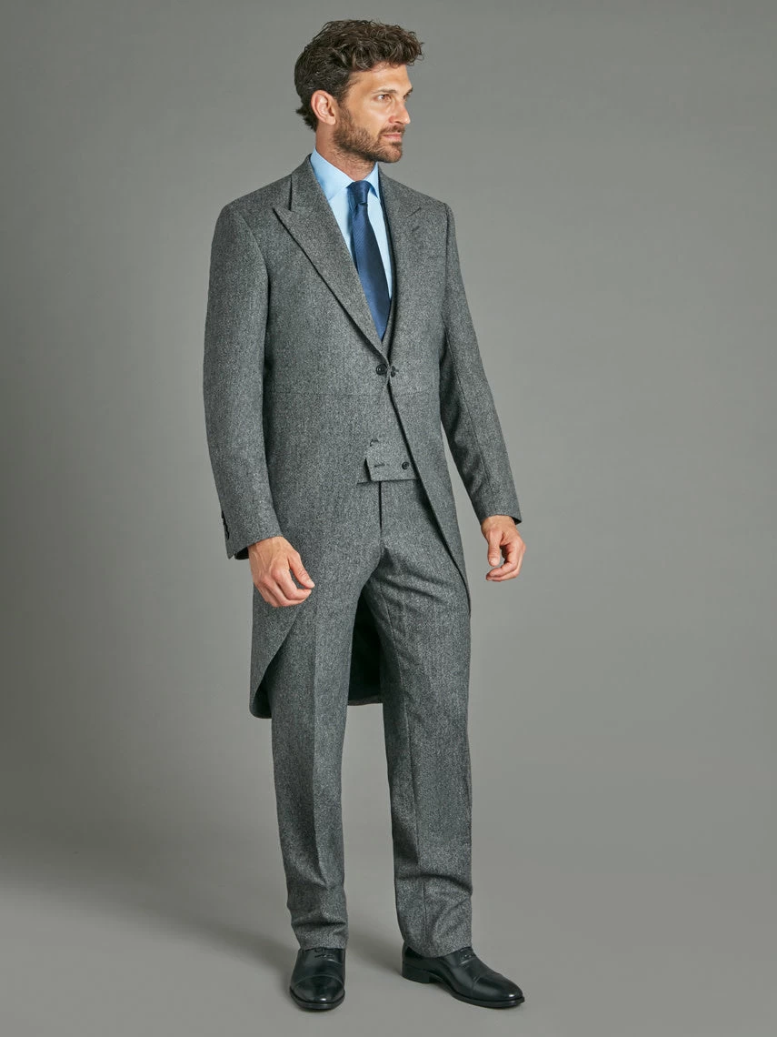 New for this Winter season, this flecked morning coat offers refined sophistication. Made from 100% wool and expertly tailored this can be paired with the matching trousers and double breasted waistcoat, perfect for an elegant winter wedding.