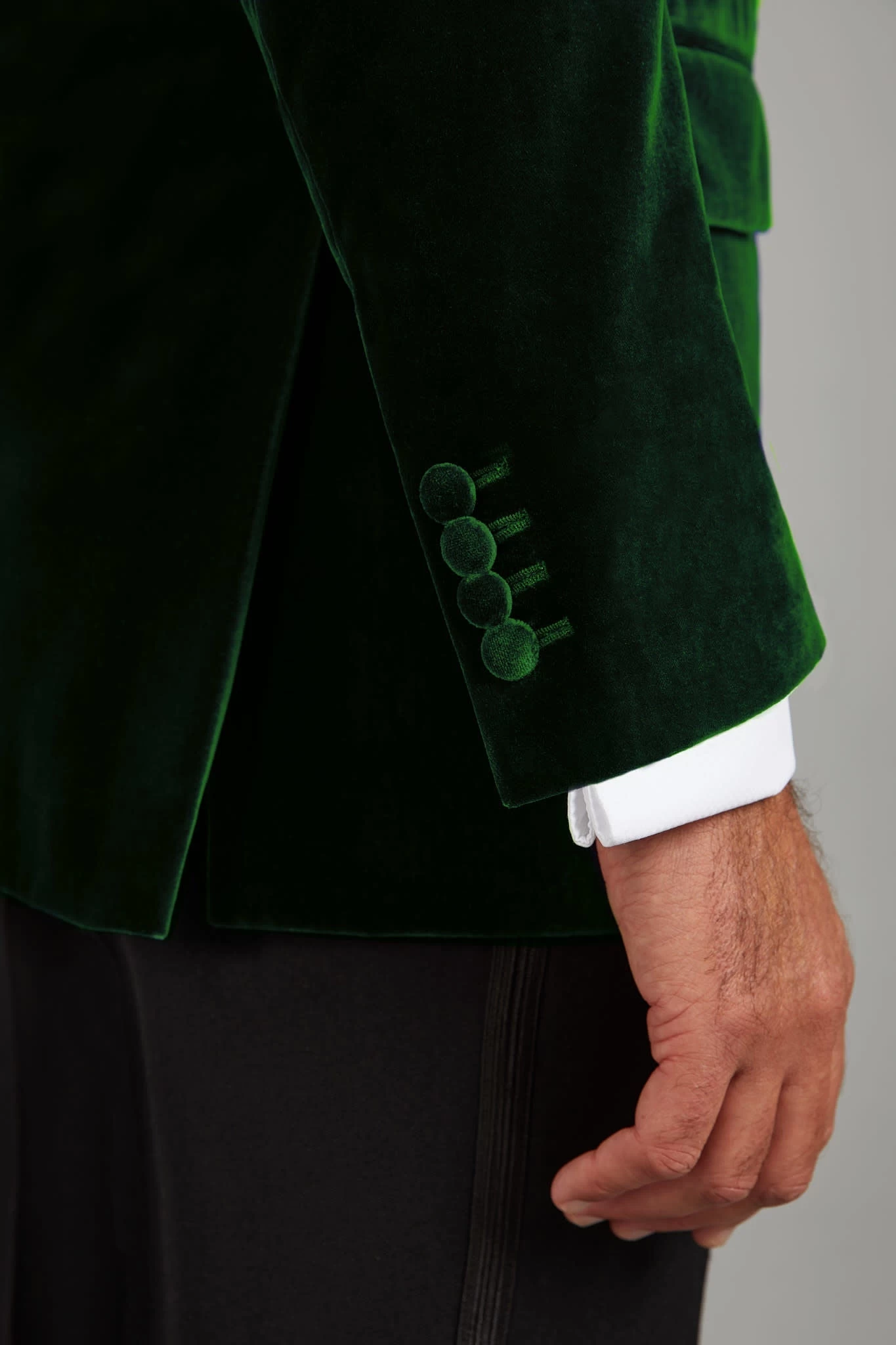 Crafted from a deep green velvet with a mandarin collar, the Ormonde Smoking Jacket provides a unique twist on traditional styles. Opt for this piece to add a touch of unconventional elegance to your evening ensemble. This jacket is expertly tailored from our signature ‘Ormonde’ design, for a timeless and fitted silhouette with structured shoulders.