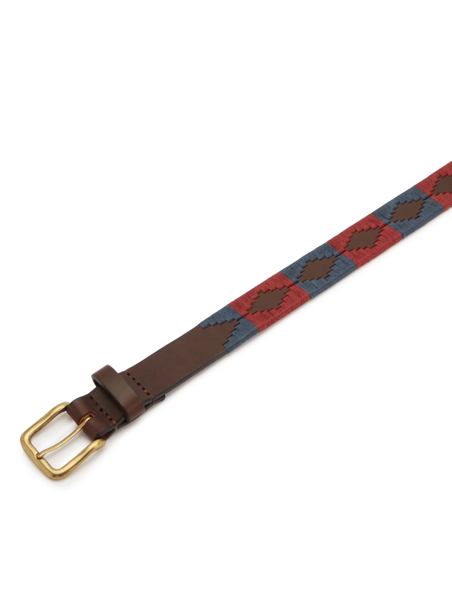 Adopted by Argentine polo players to wear in their team colours, these belts are made in Argentina from saddle leather, with an antique finished buckle. The Marcado Pampeano belt features blue and red colours with brown leather detail. Contemporary but hard-wearing, there are many designs to choose from inspired by the Andes Mountains.