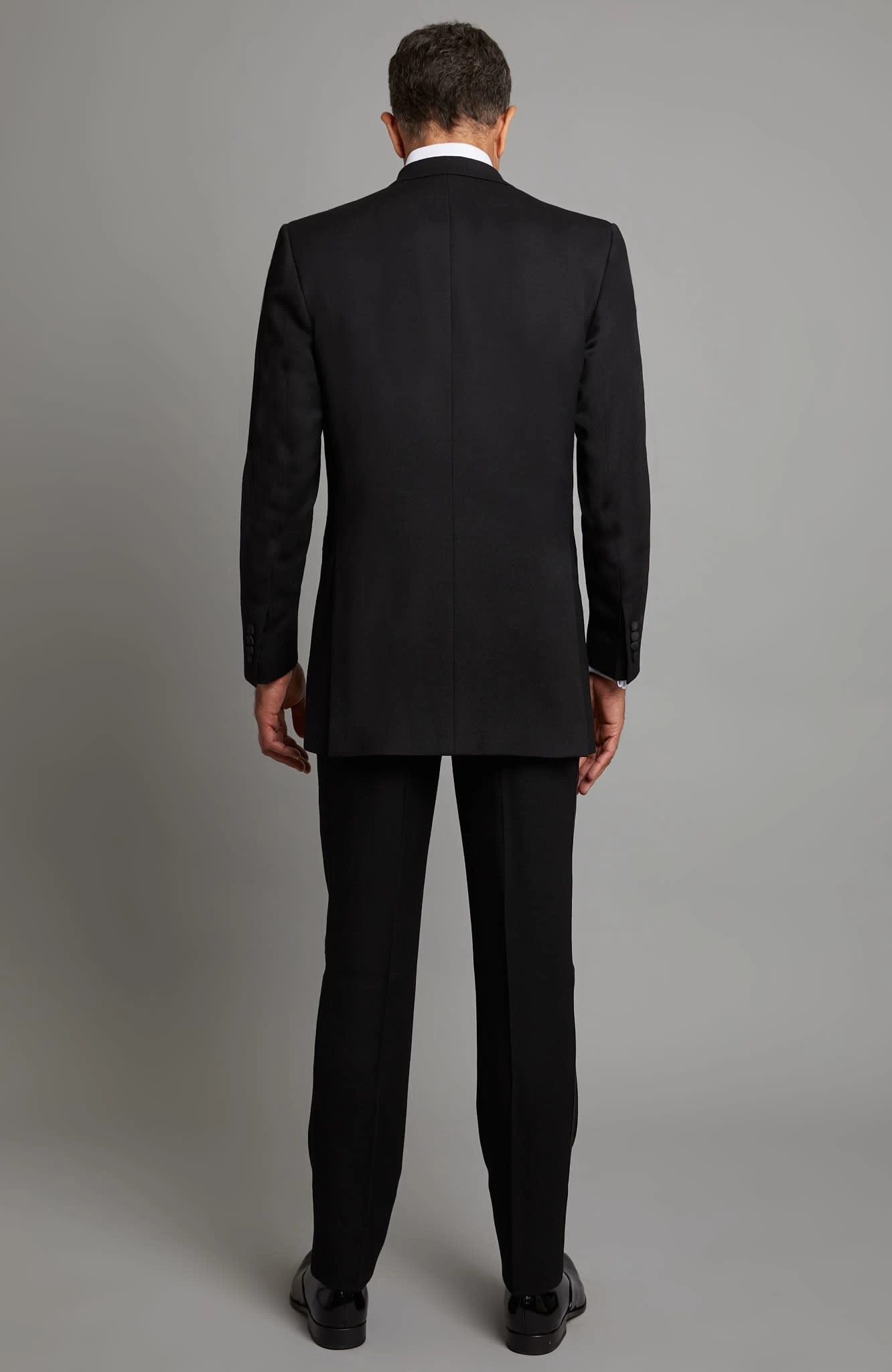 The exquisite black barathea wool used in crafting this Whittaker dinner jacket makes it one of the finest dinner jackets in our line. Featuring a smooth satin silk lapel, structured shoulders, classic fit and working cuffs, this will be integral to any gentleman’s evening wear look.