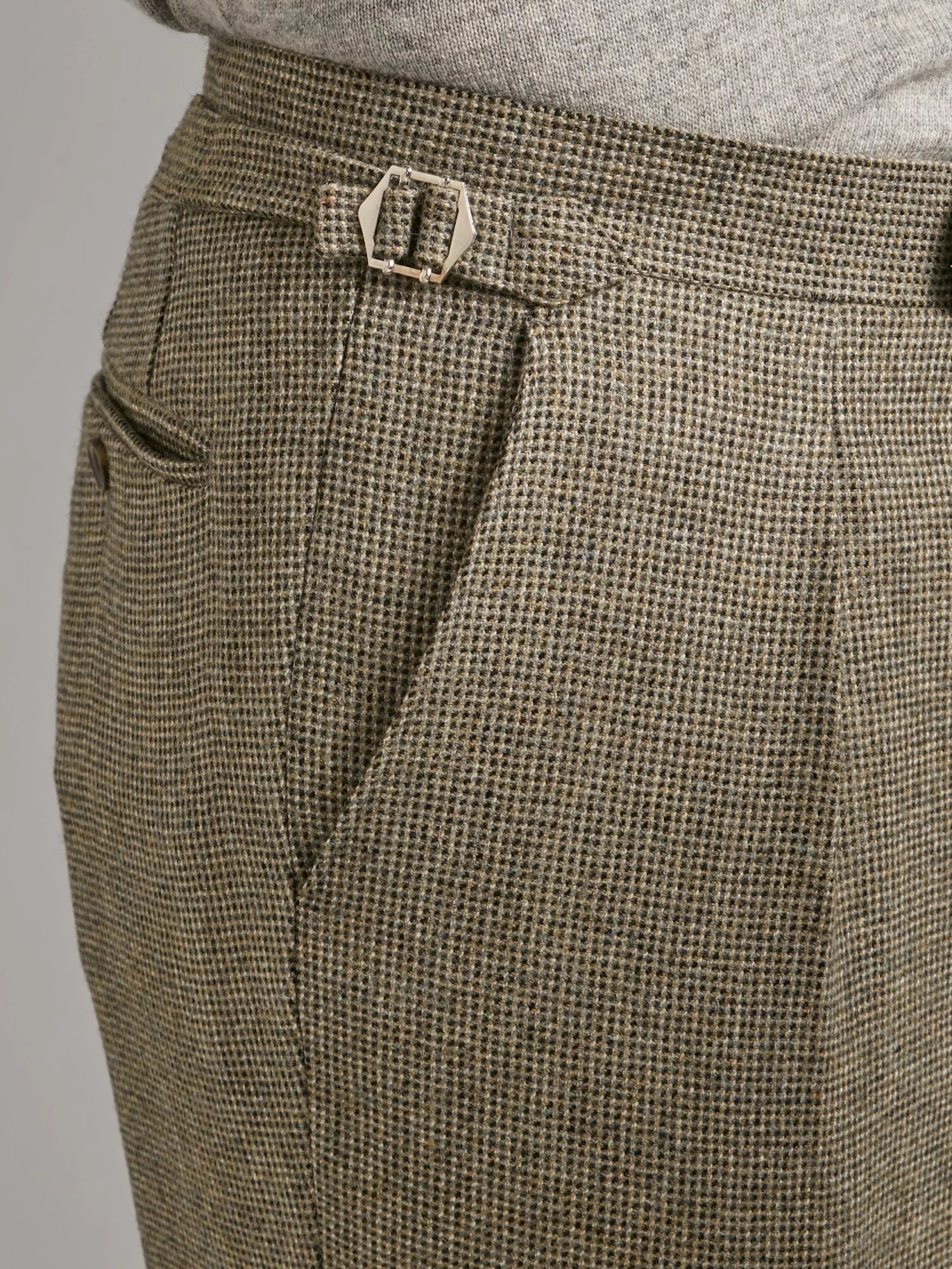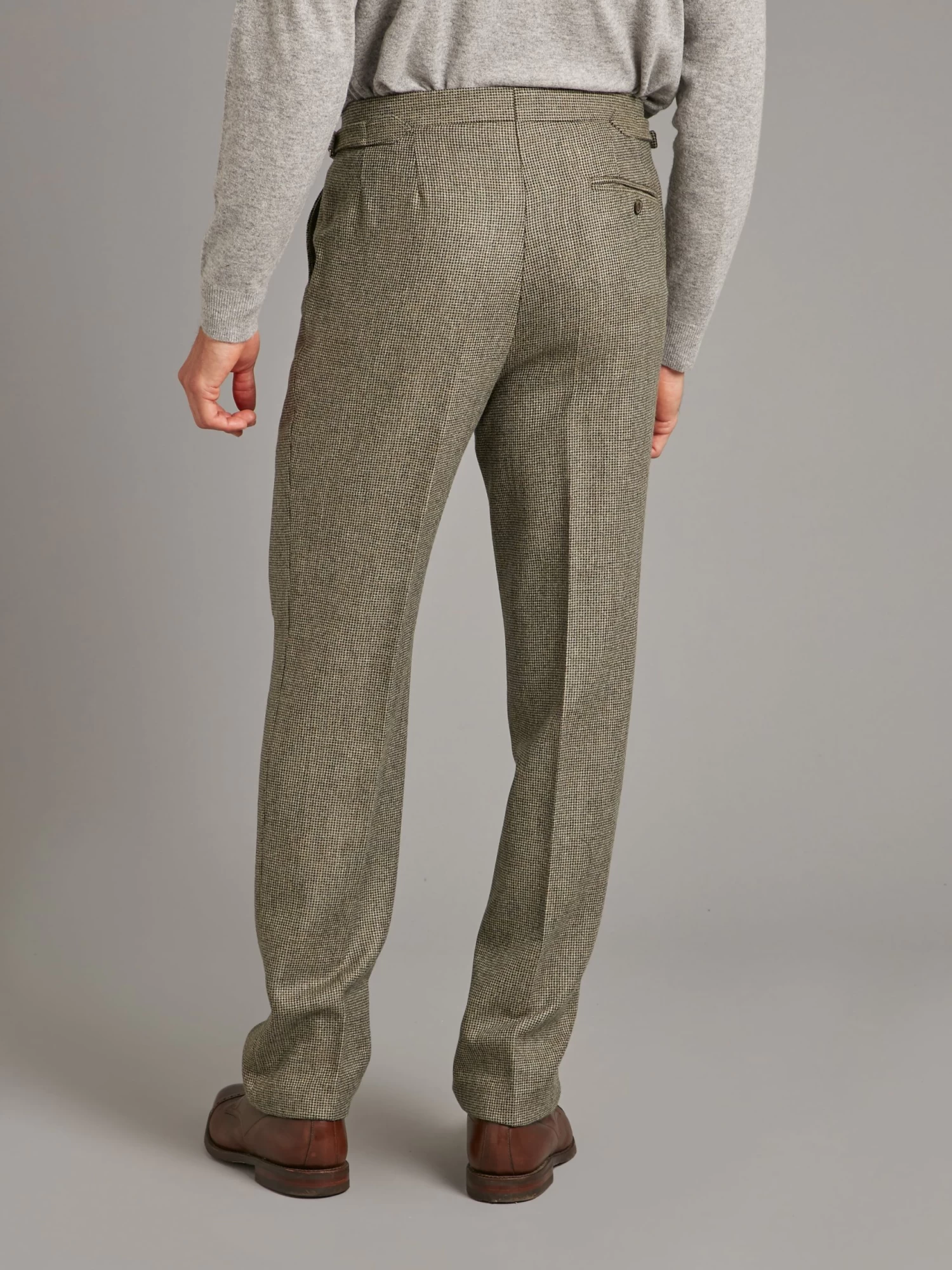 Oliver Brown’s limited-edition pleated trousers are the creation of our bespoke department’s Head Cutter; woven with a custom, pattern as part of our ‘Limited-Edition Tweed’ capsule collection, it is half-lined and features single pleats and side adjusters, making it a comfortable choice for outdoor country pursuits, whether that’s stalking through heather or strolling through a park in town.