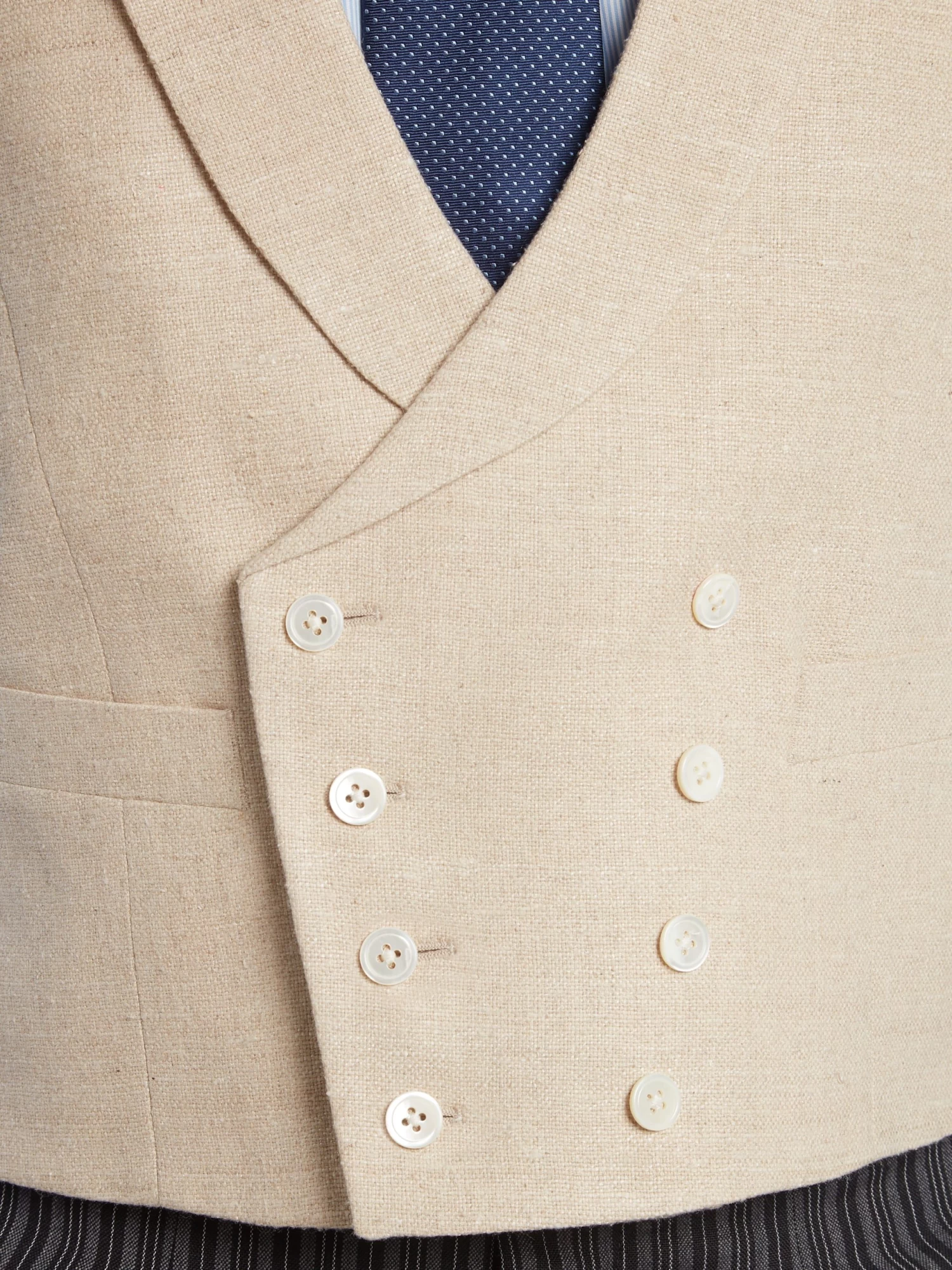 This pure silk waistcoat in ivory is classically cut; it features a shawl lapel, double breasted front, off-white satin back-panel and traditional waist adjuster. Available in a palette of stylish, muted shades, perfect for a wedding or Royal Ascot.