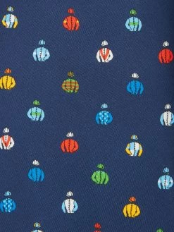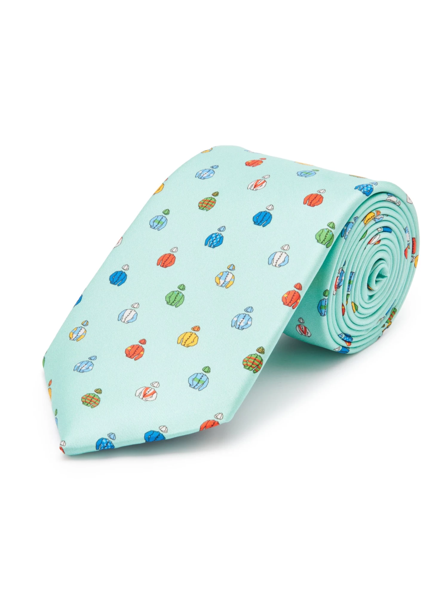 This Jockey Tie in green adds unique flair to your wardrobe. Crafted from high-quality silk, it features a whimsical pattern and is perfect for both formal and casual events.