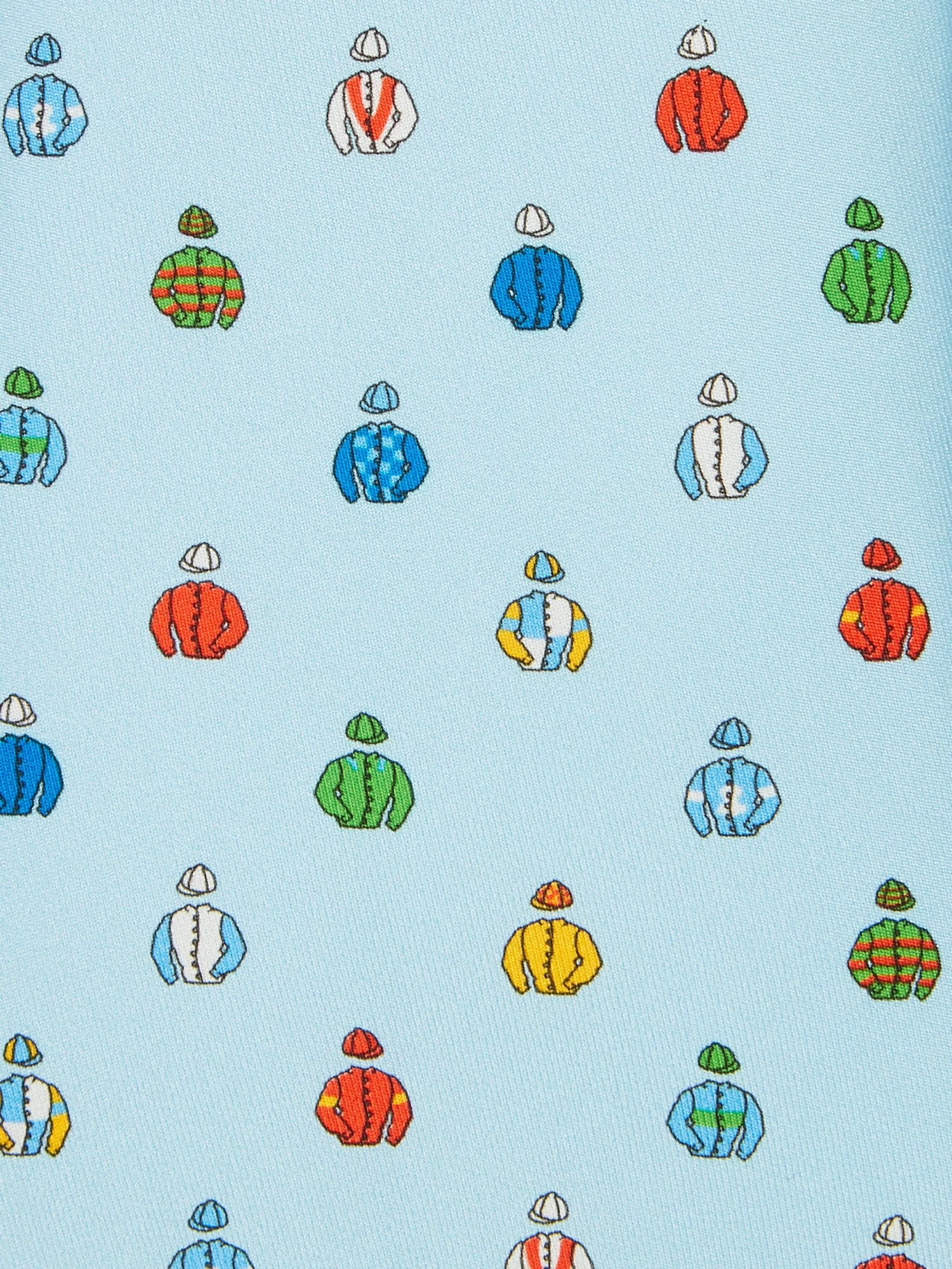 This Jockey Tie in pale blue adds unique flair to your wardrobe. Crafted from high-quality silk, it features a whimsical pattern and is perfect for both formal and casual events.