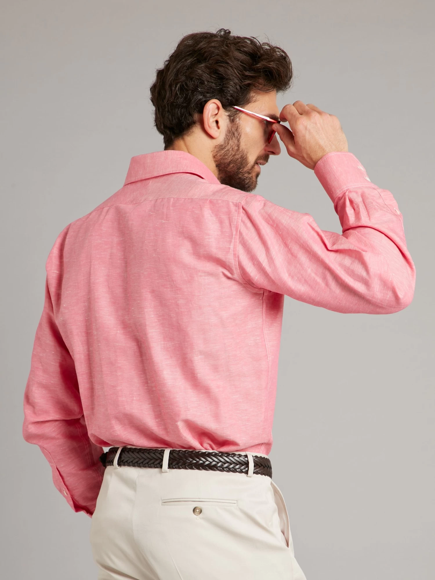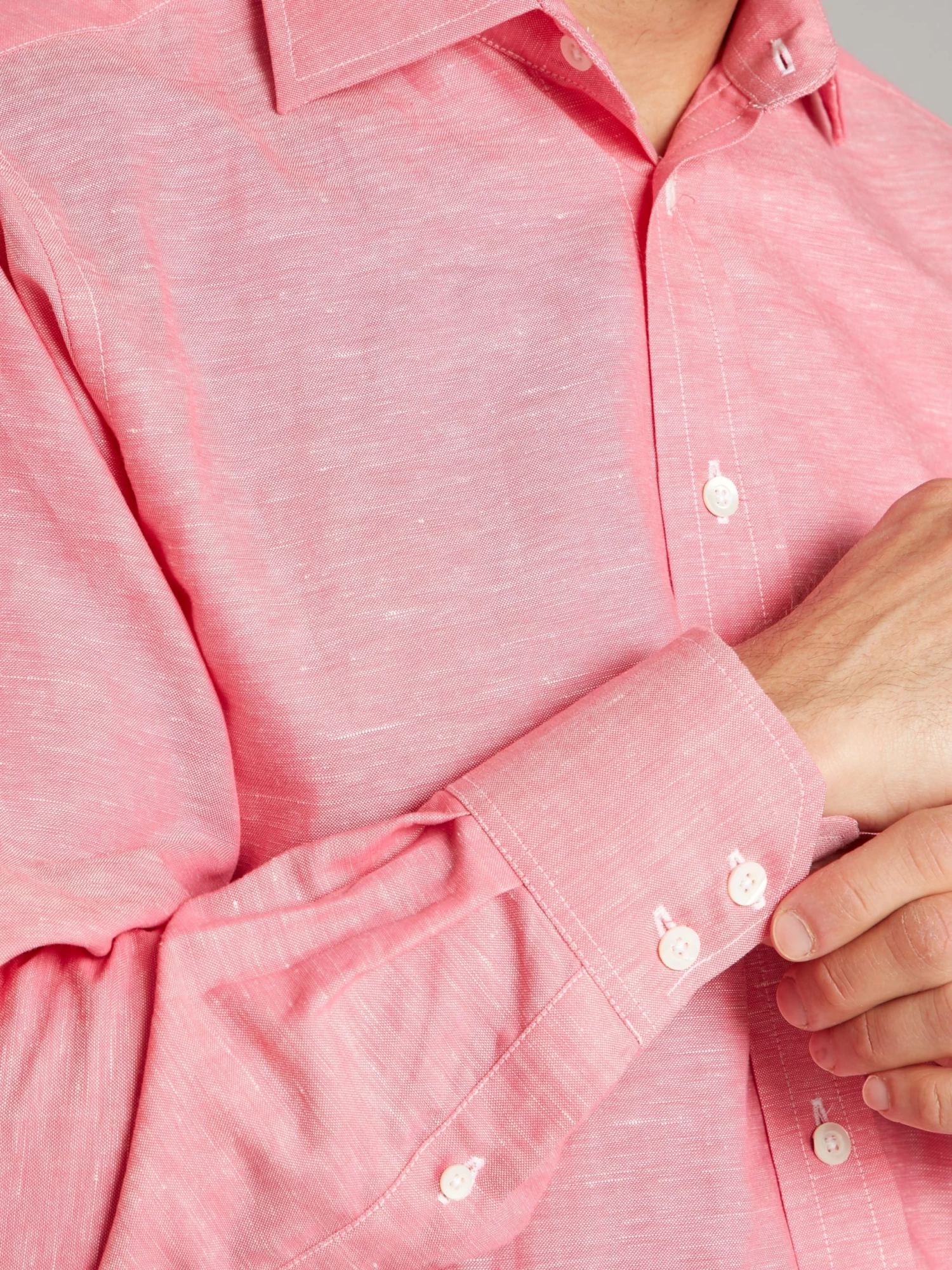 Our Regular Fit shirt is perfect for summer occasions. The lightweight blend of cotton and linen offers breathability, while the crimson colour offers a striking look. The relaxed fit ensures comfort, making it an ideal choice for long days.