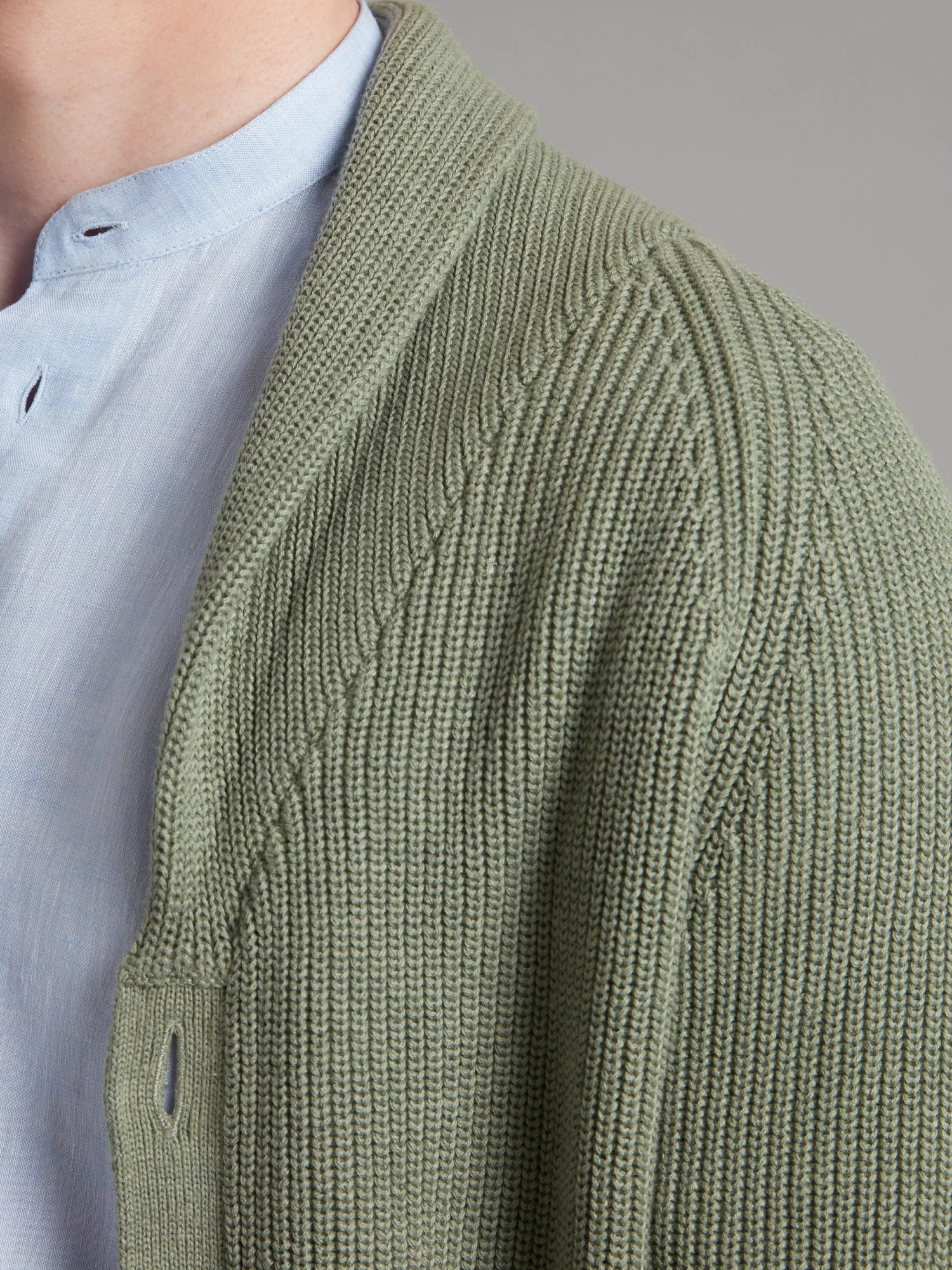 Shawl Collar Cardigan Linen Blend – Sage Green