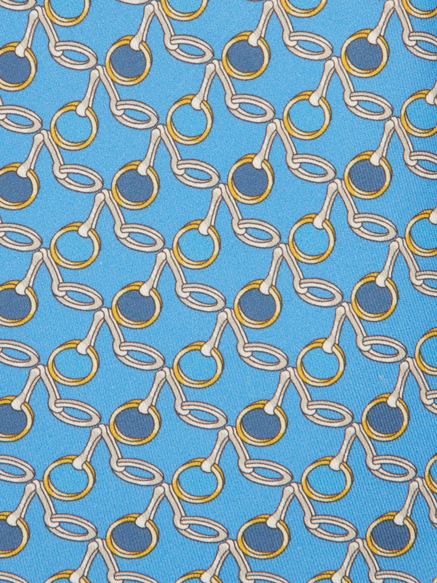 Complete the look with this sky blue woven silk tie featuring a stirrup motif. Made with the highest craftsmanship and attention to detail, it’s the perfect accessory for any formal or special occasion, guaranteed to add a touch of elegance and personality to your outfit.