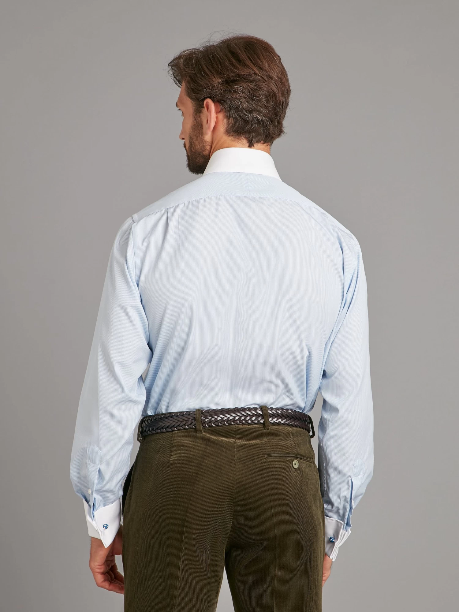 Experience style and comfort with Oliver Brown’s Blue and White Striped Shirt, featuring a white collar and cuffs. Crafted from 100% cotton, these shirts ensure unparalleled comfort throughout the day. Designed with breathability in mind, our lightweight shirts allow air to flow freely, making them perfect for warm weather or layering during colder seasons.