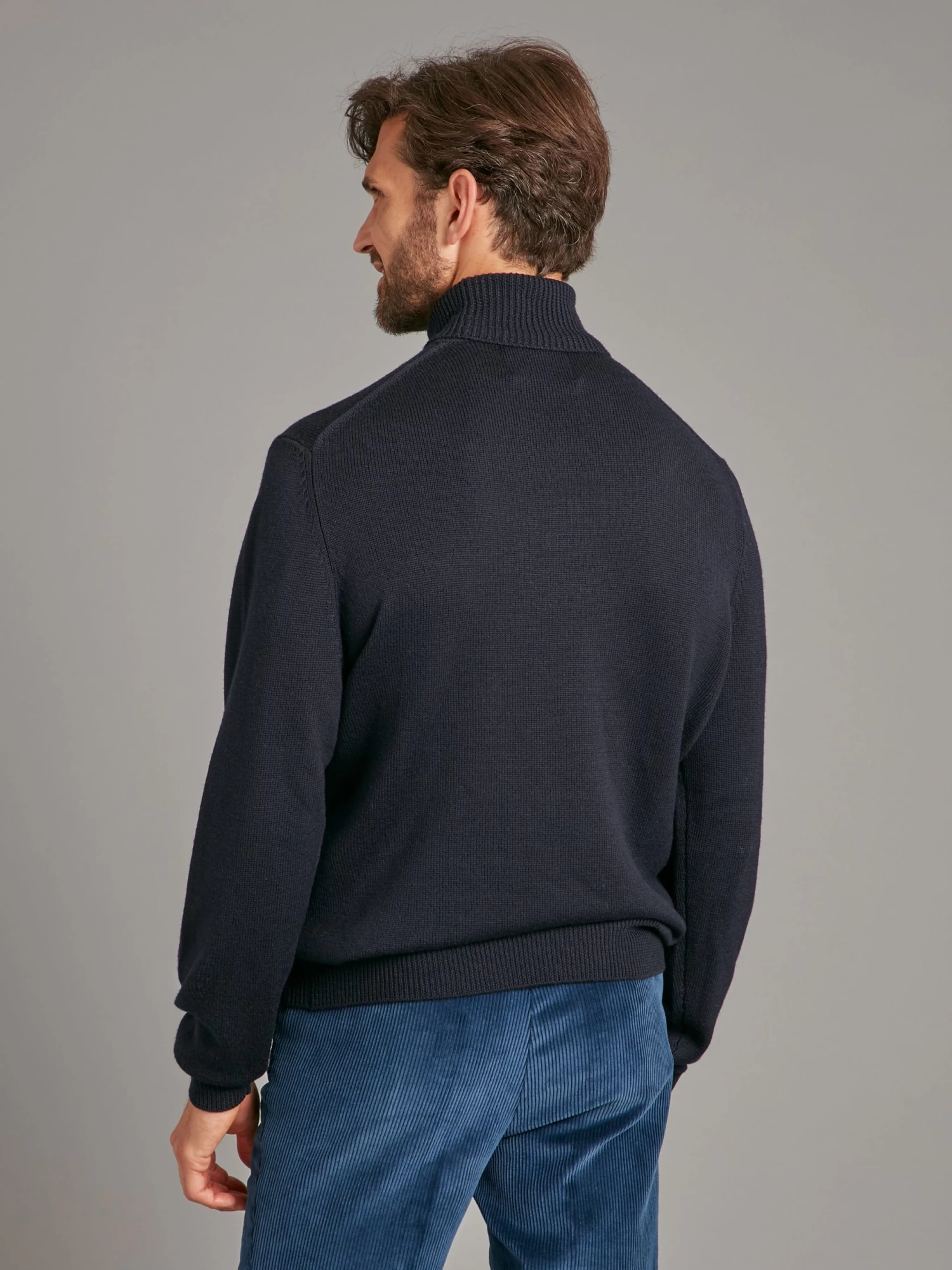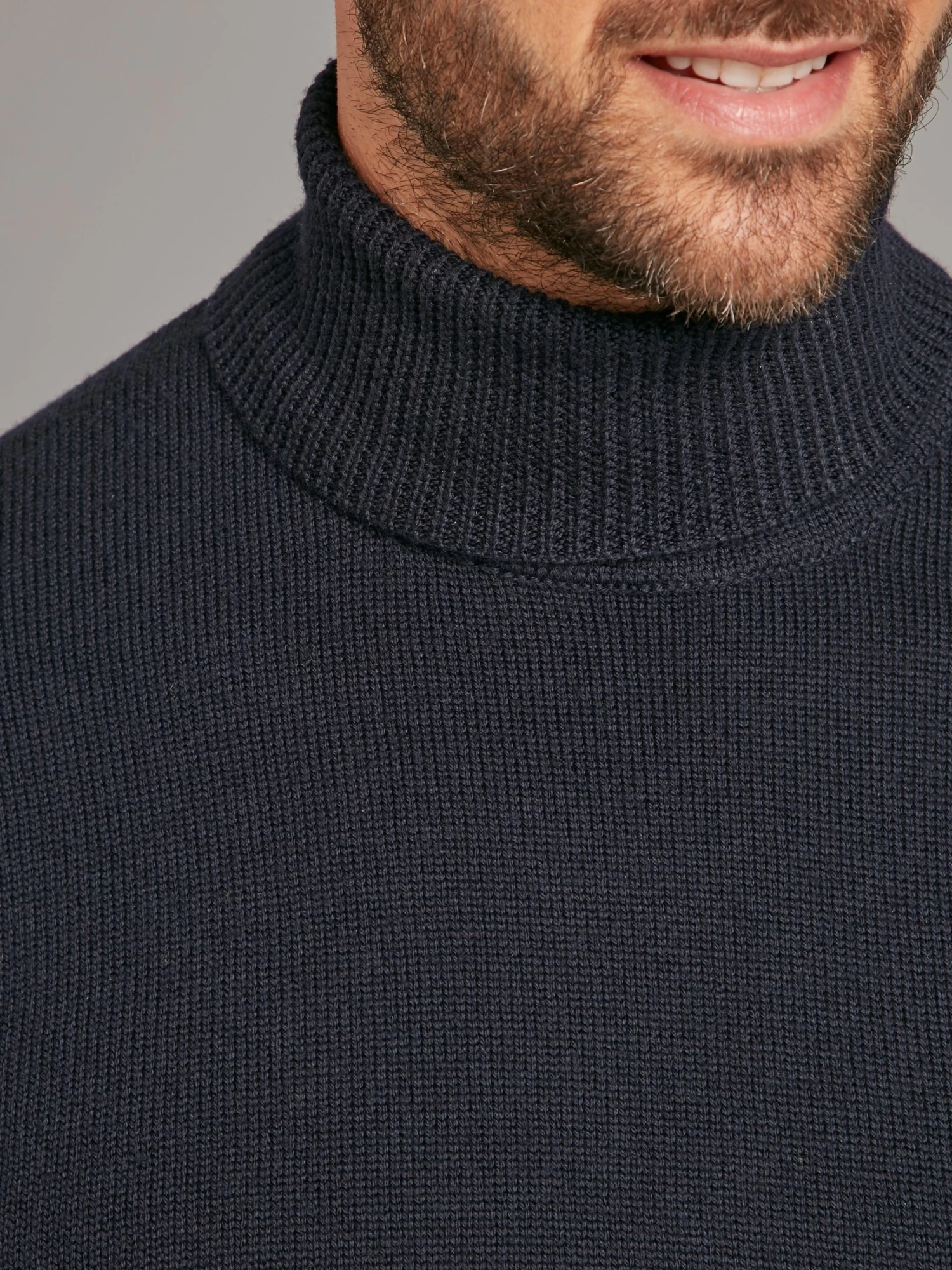 This luxurious fine knit roll neck jumper in dark navy is a stylish addition to your winter wardrobe. Comfort and warmth are combined in this classic jumper, made from 100% merino wool for a soft and enduring finish. Layer under a sports jacket for a sophisticated, laid back look.