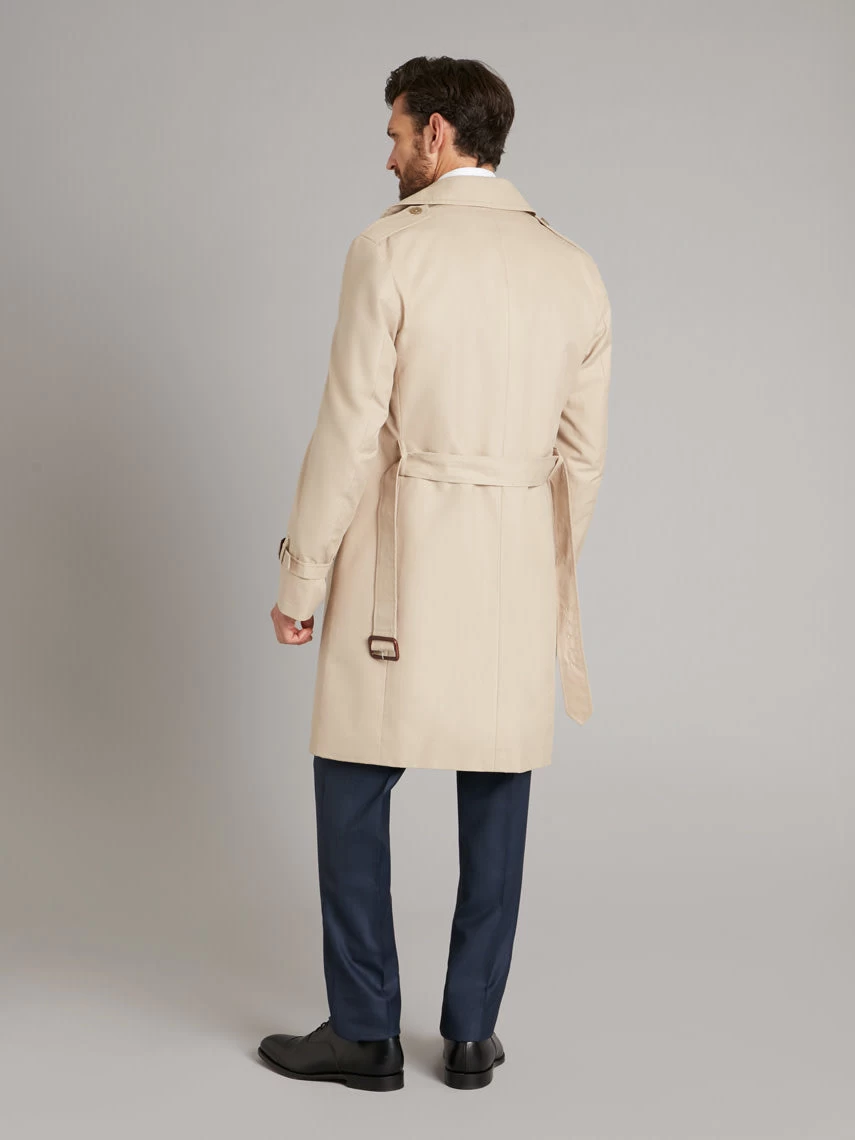 Offering a refined silhouette, this tailored trench coat in camel will bridge the gap between seasons, providing a lightweight layer. This classic wardrobe staple can be worn over a business suit and will also add a dash of smartness to casual pieces.